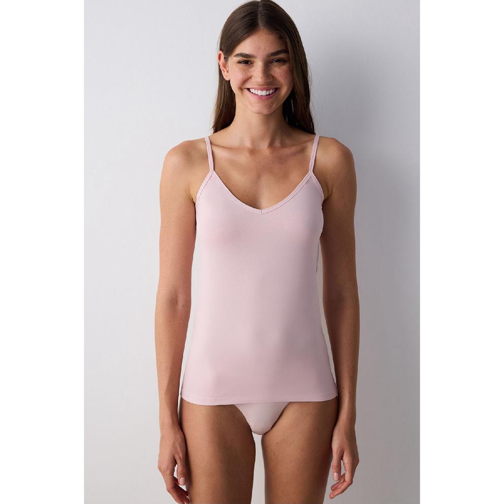Двусторонняя нижняя рубашка с тонкими бретелями по бокам цвета пыльной розы