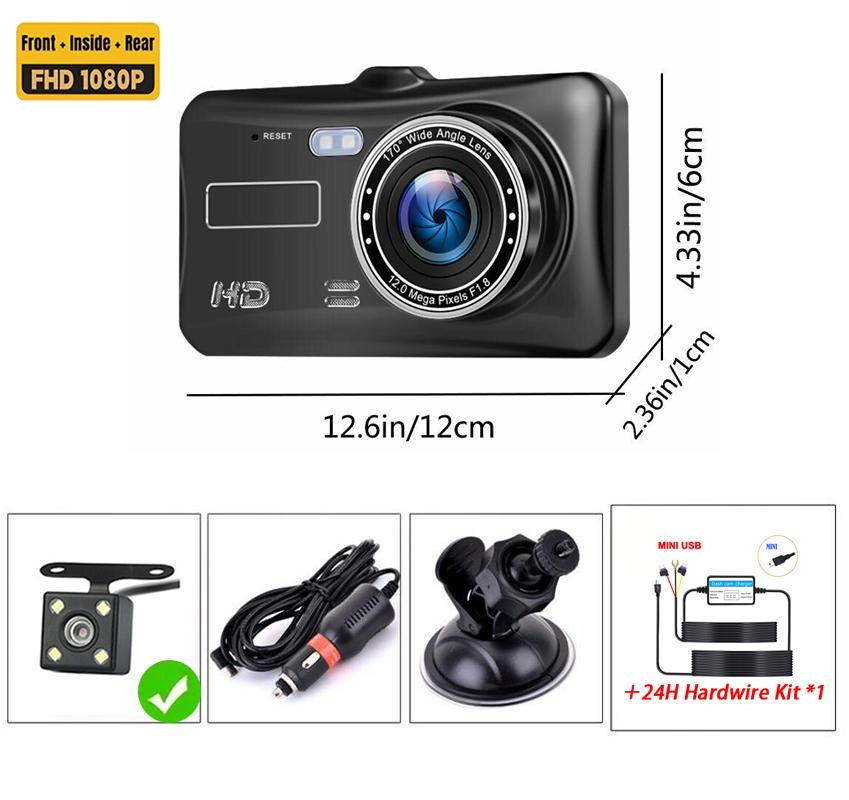 4-дюймовый видеорегистратор 1080P HD для автомобилей с сенсорным экраном, автомобильный видеорегистратор, камера заднего вида для парковочного монитора автомобиля, черный ящик 24 часа в сутки