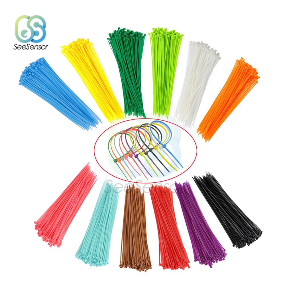 100 шт. 200 мм самоблокирующиеся нейлоновые кабельные стяжки 8 дюймов 12 цветов пластиковые стяжки для проводов 18 фунтов ремни для обвязки