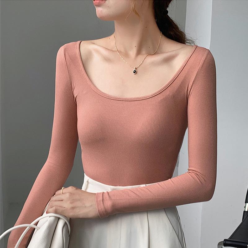 Высокоэластичная Хлопковая Осень Новый Стиль Внутренняя Базовая Рубашка Женская С Длинным Рукавом Облегающая Футболка Сексуальный и Стройнящий Топ