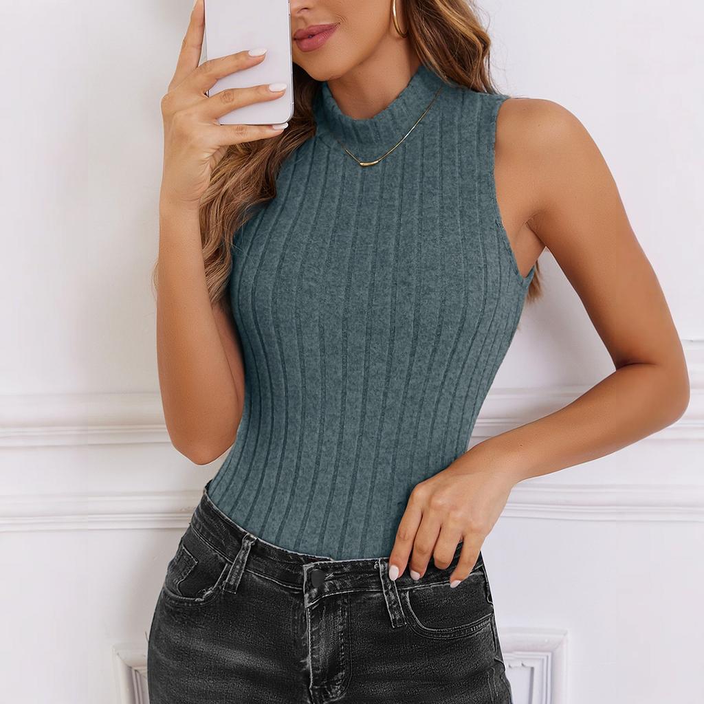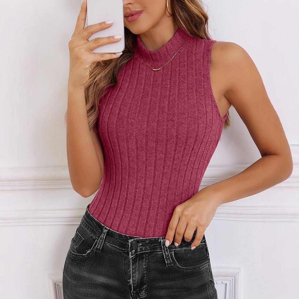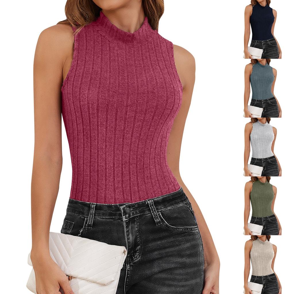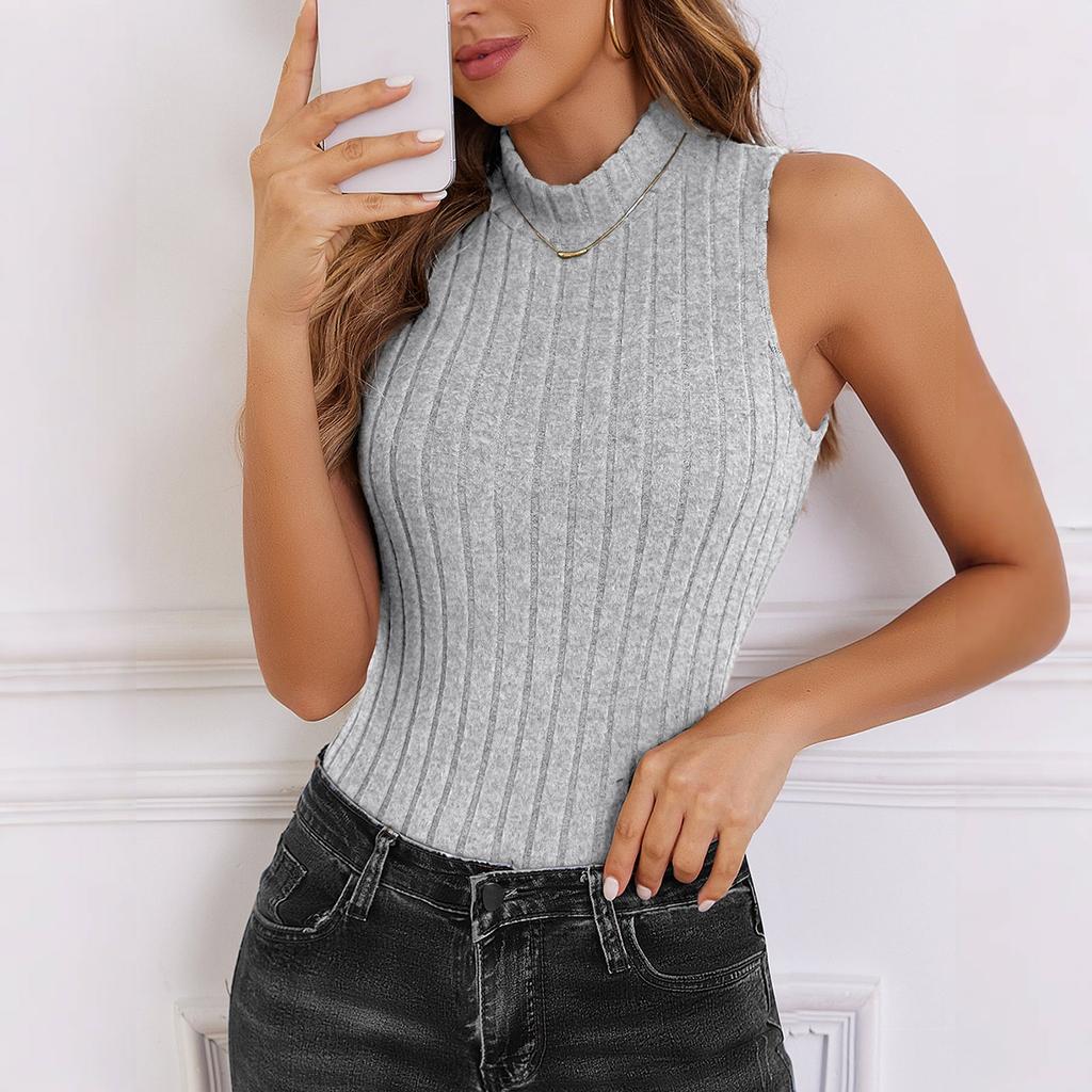 Женский полосатый маленький воротник-стойка Slim Fit универсальный безрукавный жилет базовый топ