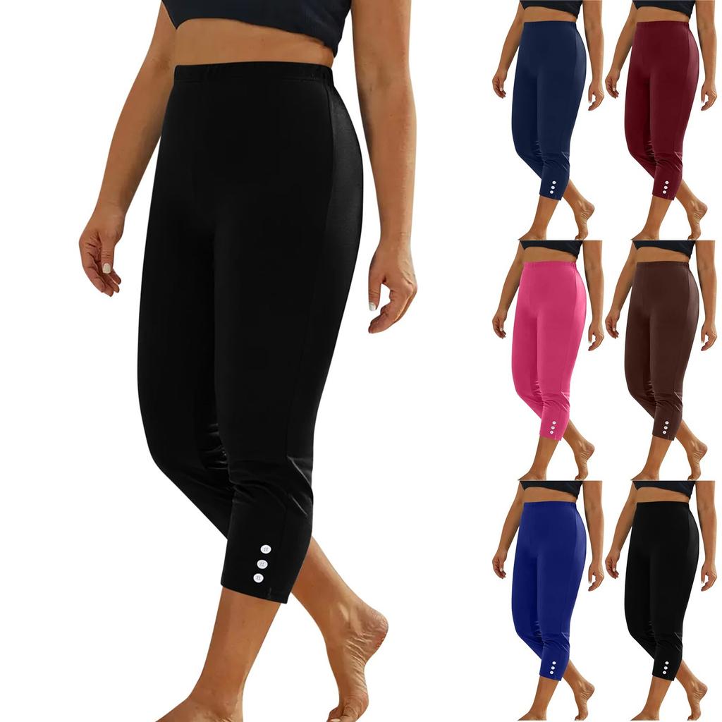 Женские модные однотонные повседневные брюки на пуговицах, спортивные облегающие брюки длиной семь четвертей