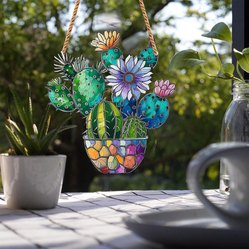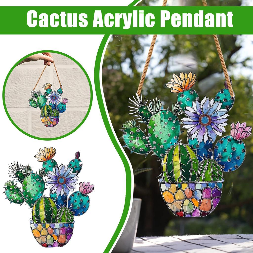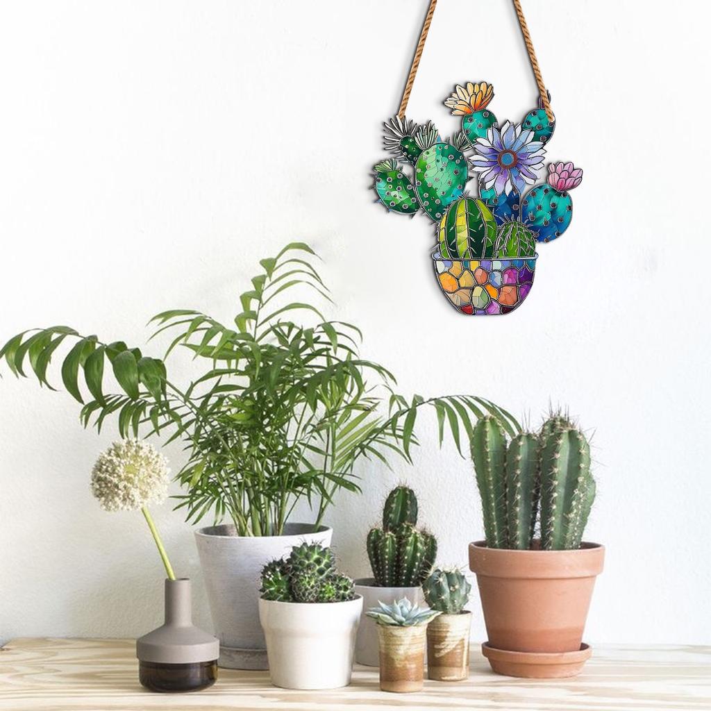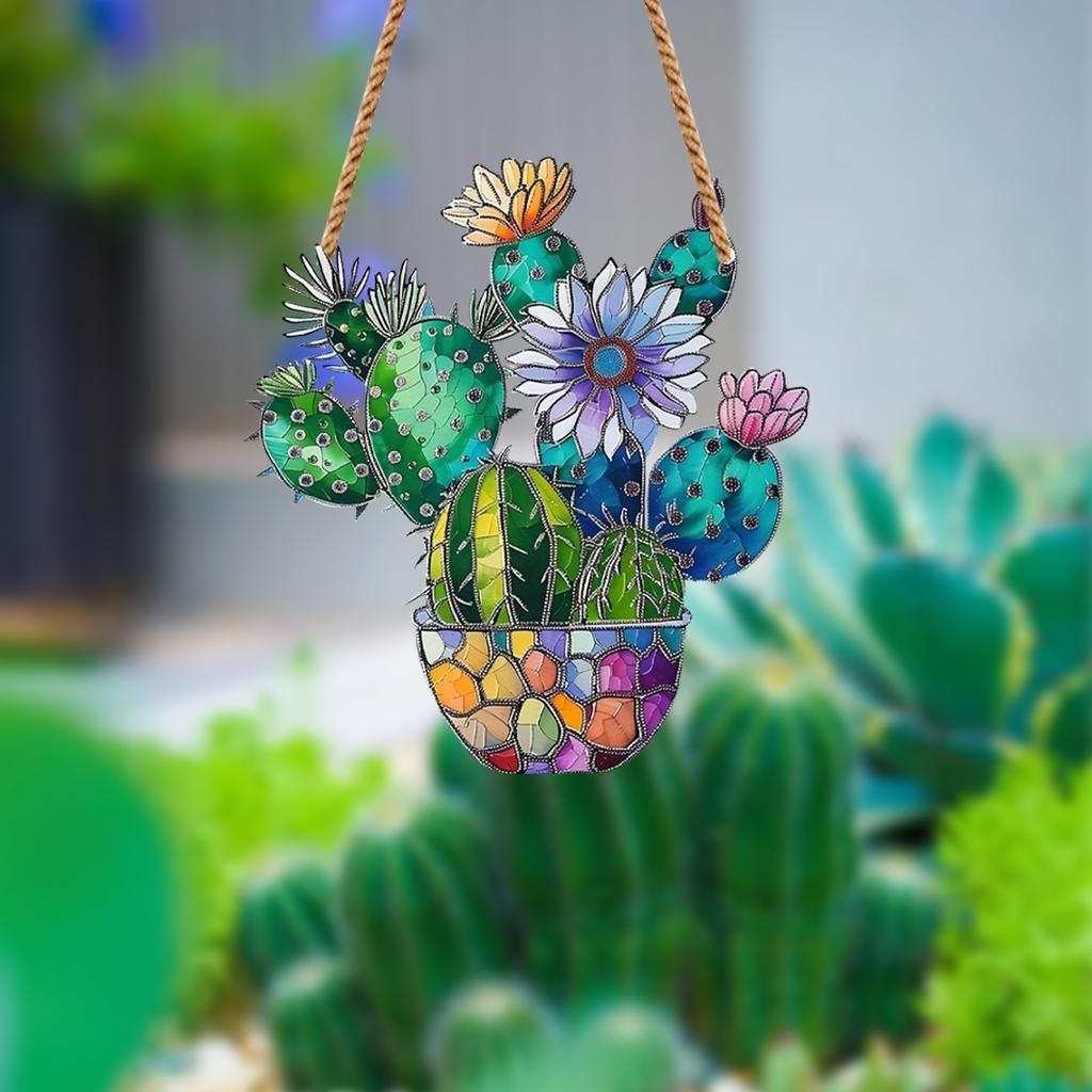 Цветущий кактус, окрашенный в цвет, подвесной акриловый оконный декор, креативное освещение, подвесной светильник для домашнего декора