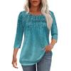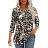 Женская мода круглый вырез горловины плиссированная передняя планка топ рукав 3/4