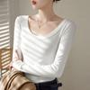 Отличная хлопковая нить U-образный воротник длинный рукав футболка женская новая осень и зима утягивающий топ базовая рубашка Корея