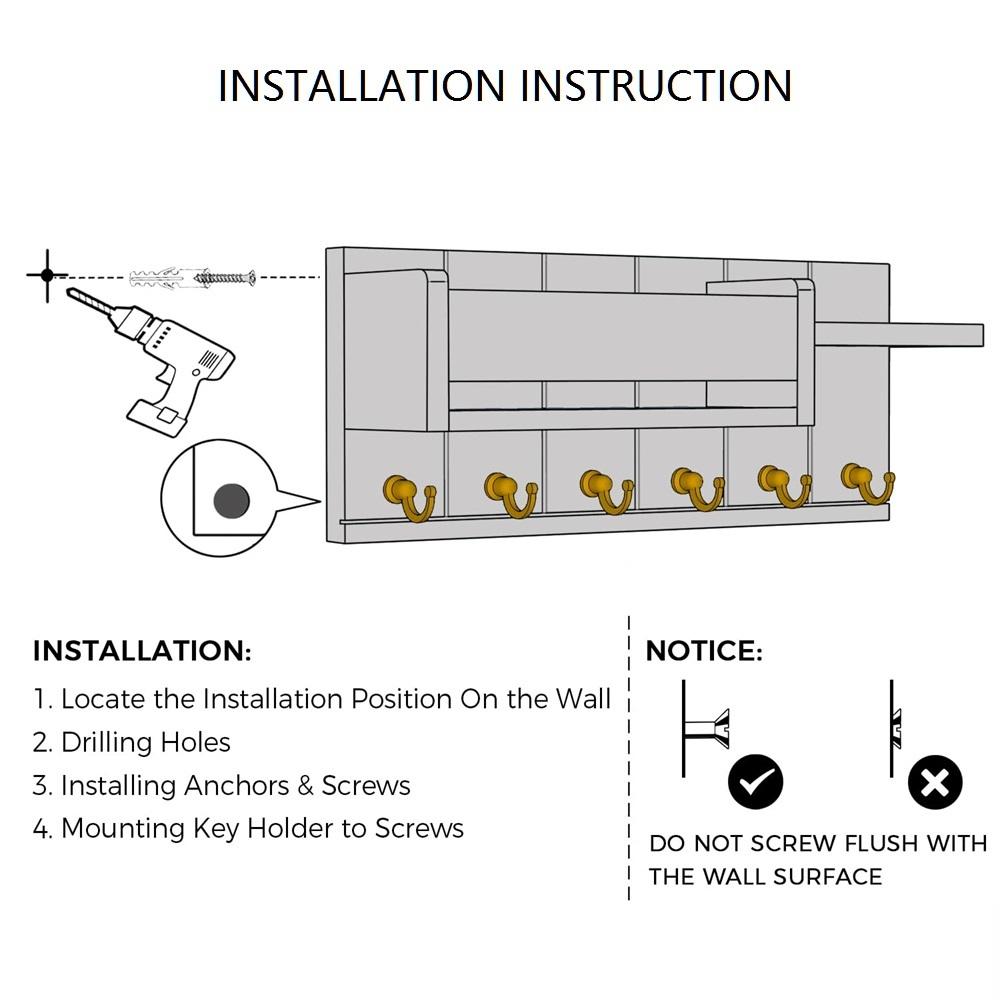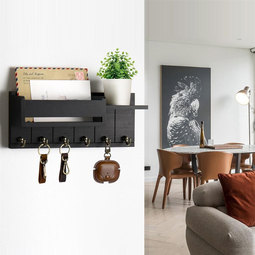 Декоративная стойка для ключей и почтовый органайзер с 6 крючками для ключей, настенный держатель для ключей из дерева в деревенском стиле с полкой для прихожей гостиной