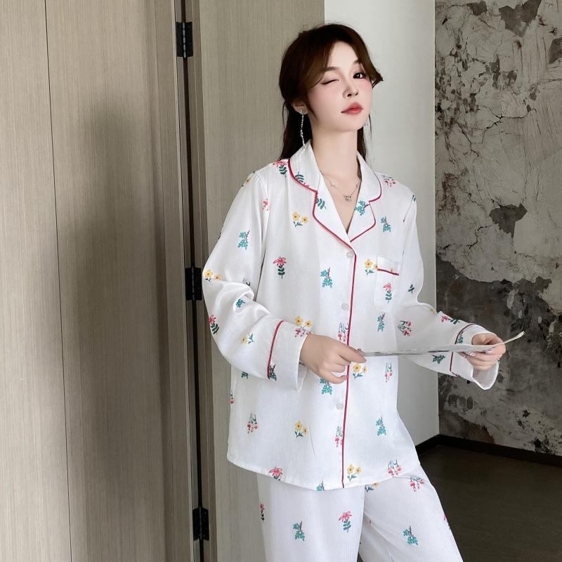 Мягкая домашняя одежда из ледяного шелка с принтом, брюки с длинными рукавами, классная пижама для женщин на весну и осень — купить товар онлайн с бесплатной доставкой по всему миру!