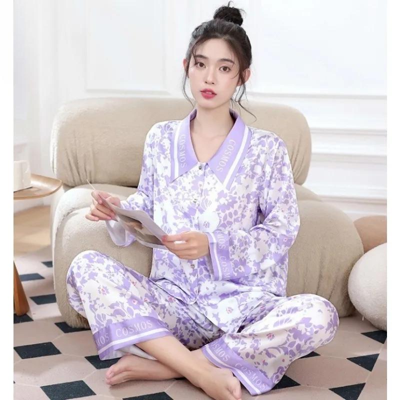 Фиолетовый цветочный стиль Удобная осенняя новая пижама для женщин Ice Silk Cool Повседневная домашняя одежда — купить товар онлайн с бесплатной доставкой по всему миру!
