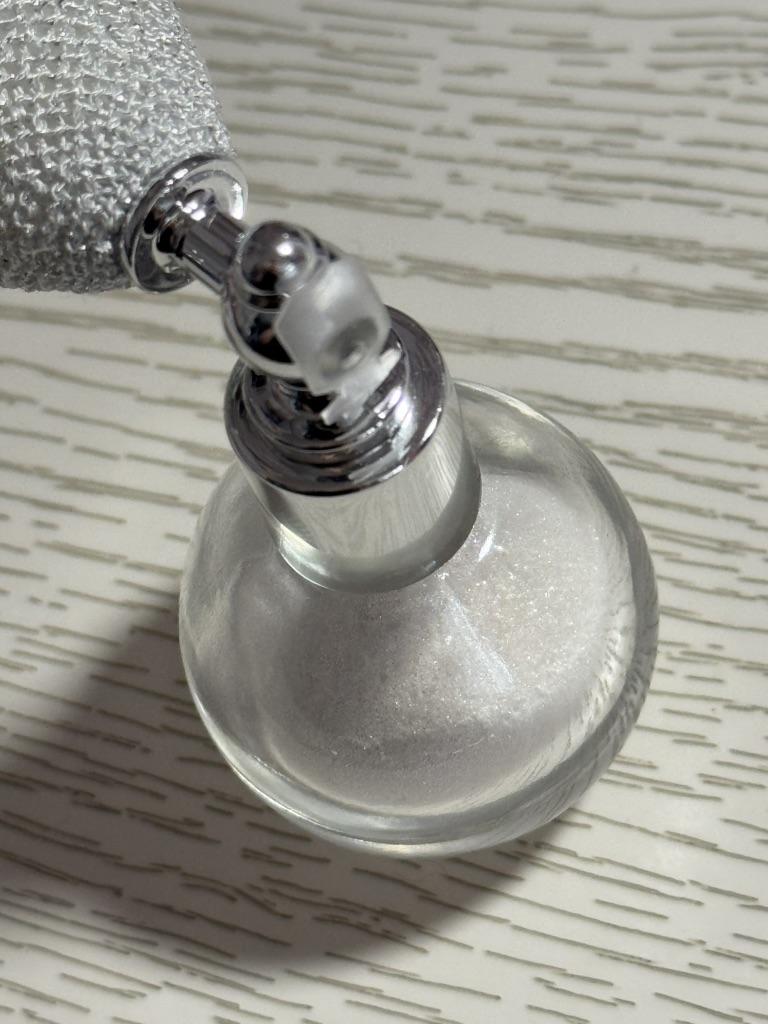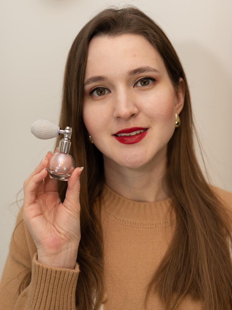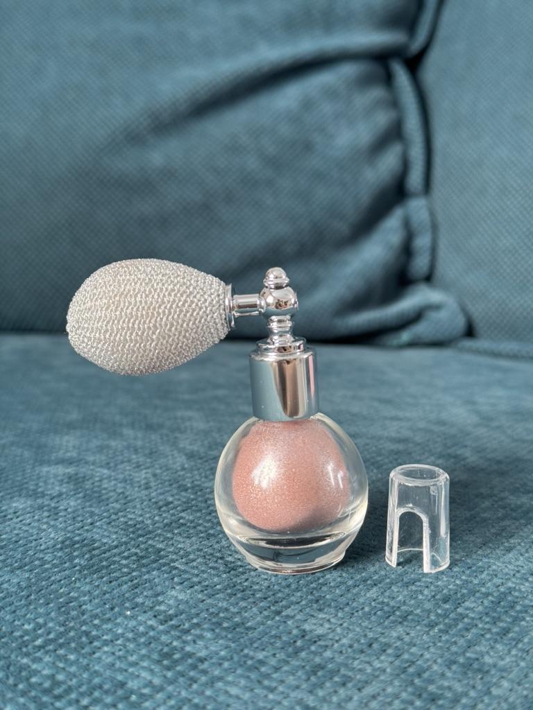 Хайлайтер для лица и тела ✨ Во-первых, должна сказать сам бутылек и распылитель очень приятные эстетически. Что само по себе вайб! Во-вторых, приятный запах и сами по себе блестки маленькие, нежные, блестящие. — Сам бутылек закрывается пластиковой крышечкой. Также у отверстия есть силиконовая закрывашка; — Распылительная подушечка очень мягкая, на нее легко нажать, блестки выходят легко; — Блестки хорошо наносить на праймер, чтобы лучше держались) А так они остаются на коже, но часть конечно просто опадает со временем.