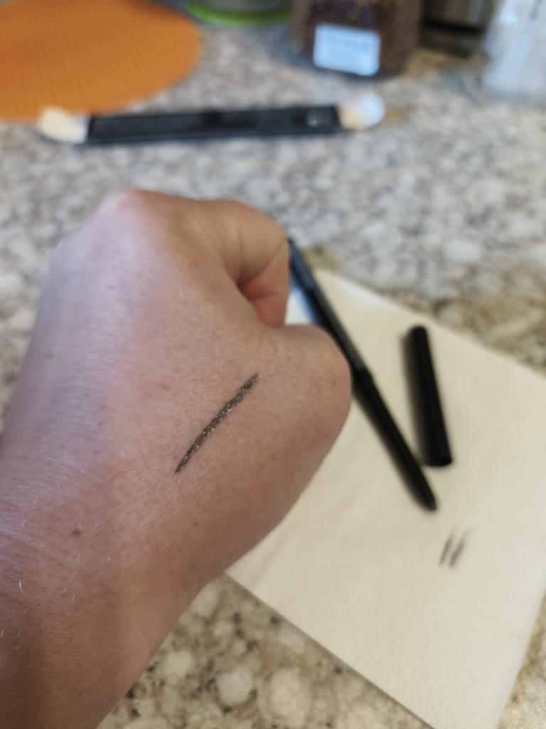 Карандаш для глаз. Стерженек выдвигается. Цвет темно-серый, с блестками. Очень понравился, еще закажу, пока есть у продавца.