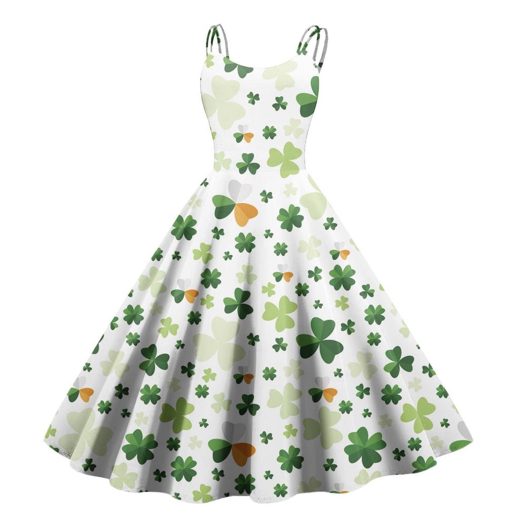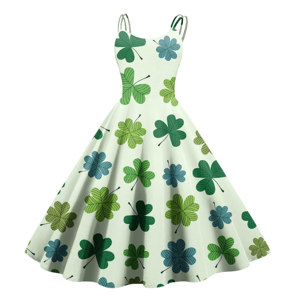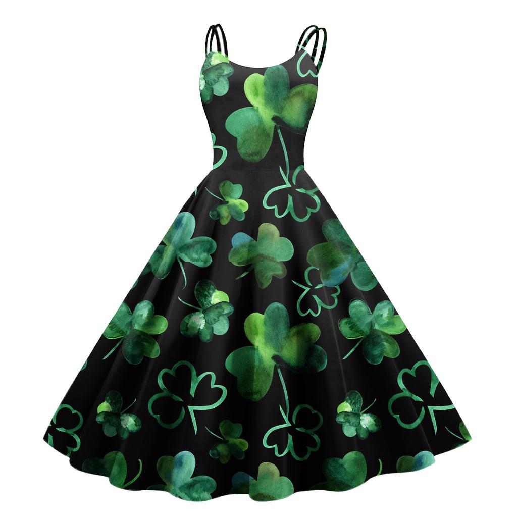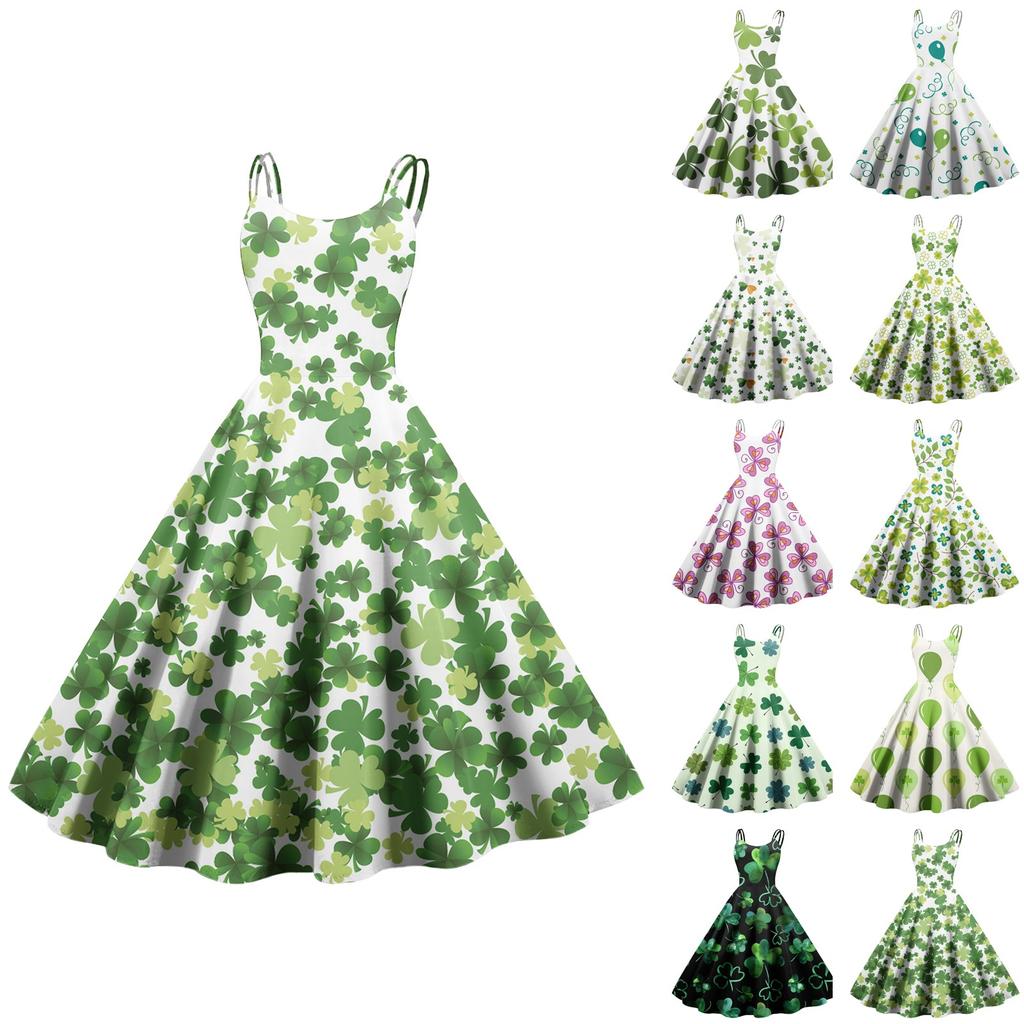 Женская мода ул.. Сексуальное винтажное платье с открытыми плечами с принтом ко Дню Святого Патрика