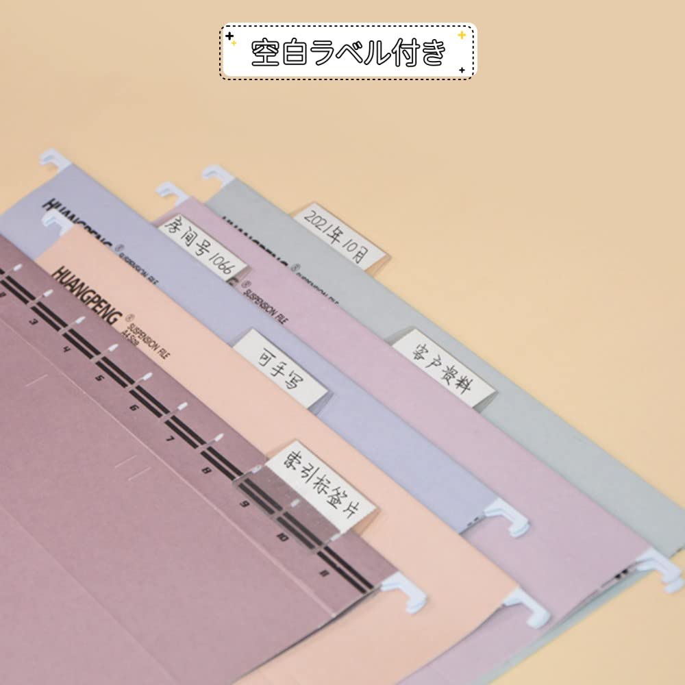 [Подвесная папка]: Изготовлен из плотной бумаги, мягкий и защищает важные документы.. Вы можете аккуратно организовать и классифицировать свои файлы. Как использовать: Сначала вставьте этикетку в держатель этикетки, затем вставьте ее в отверстие на краю папки, чтобы закрепить ее.. Все, что вам нужно сделать, это прикрепить крючки с обоих концов к коробке для подвесных папок.
