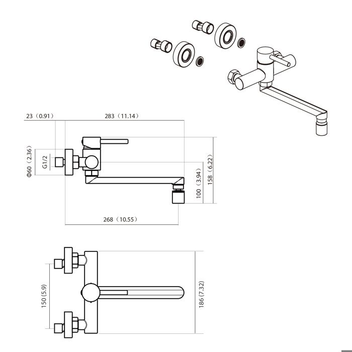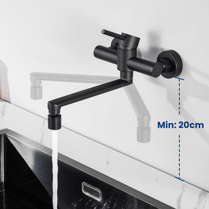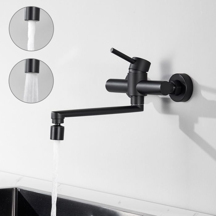 Robinet de cuisine mural - CECIPA - Noir - Acier inoxydable - Pivotant 360° - 2 jets