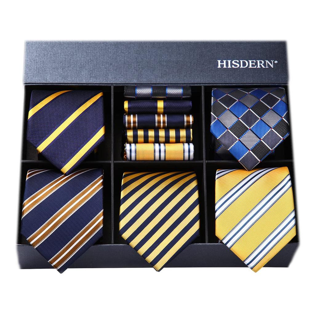 [Описание бренда] «Hisdern» — специалист по мужским аксессуарам.. Наша основная продукция включает галстуки, бабочки, аскотские галстуки, нагрудные платки, носовые платки, булавки для галстуков, запонки, пояса-кушаки и подтяжки.. Мы поставляем не только продукцию, но и ответственность. Имея более чем десятилетний опыт продаж и следуя моде времени, наша продукция является бестселлерами в США, Великобритании, Китае и Италии.. Вся продукция тщательно упаковывается вручную, стандартная доставка занимает 4–8 дней.. Если у вас есть какие-либо проблемы, пожалуйста, свяжитесь с нами в первую очередь. [Введение в продукт] [Упаковка] 3 мужских галстука + 3 шелковых нагрудных платка + 1 в подарочной коробке. Комплект из 3 легко сочетающихся галстуков из роскошного шелкового материала.. Базовый и модный дизайн можно использовать круглый год, независимо от сезона.. Стильная вещь, которую можно использовать как для официальных, так и для повседневных случаев.. Специально для бизнеса, свадеб, вечеринок, поиска работы, собеседований, поиска брака, торжественных случаев, приемов, вступительных церемоний, церемоний совершеннолетия, вечеринок по случаю окончания года, мероприятий и т. д.. подарок