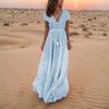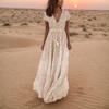 Стильное летнее платье с V-образным вырезом и коротким рукавом, длинное платье в горошек в стиле бохо на праздники