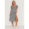 Женское платье весна-лето с разрезом, квадратным воротником и короткими рукавами в клетку