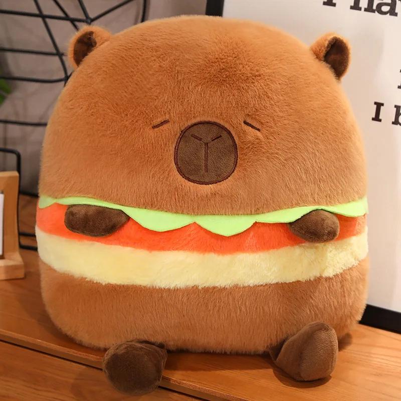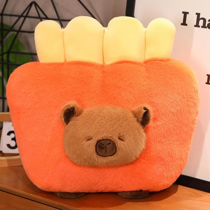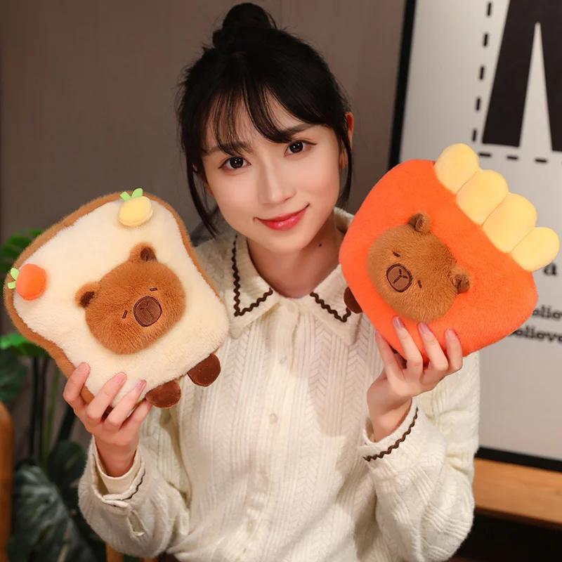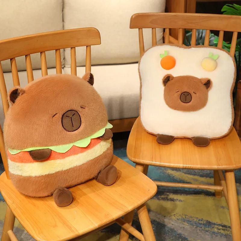 Мультяшная капибара, гамбургер, картофель фри, тост, плюшевая подушка, кавайная капибара, мягкая игрушка, животные, диванная подушка, декор, подарок на день рождения