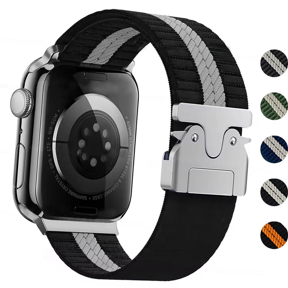 Ремешок для Apple Watch Ultra 2 1 Series 10 9 8 7 6 5 4 SE Parachute Buckle Эластичный нейлоновый волнистый плетеный ремешок для iWatch