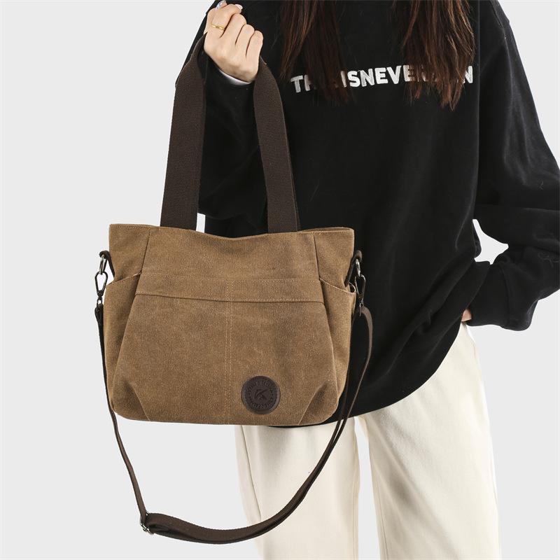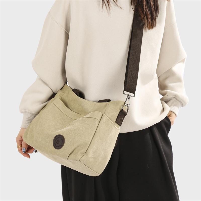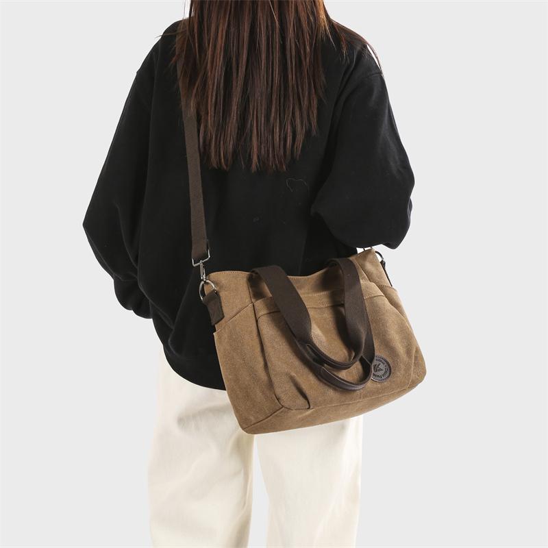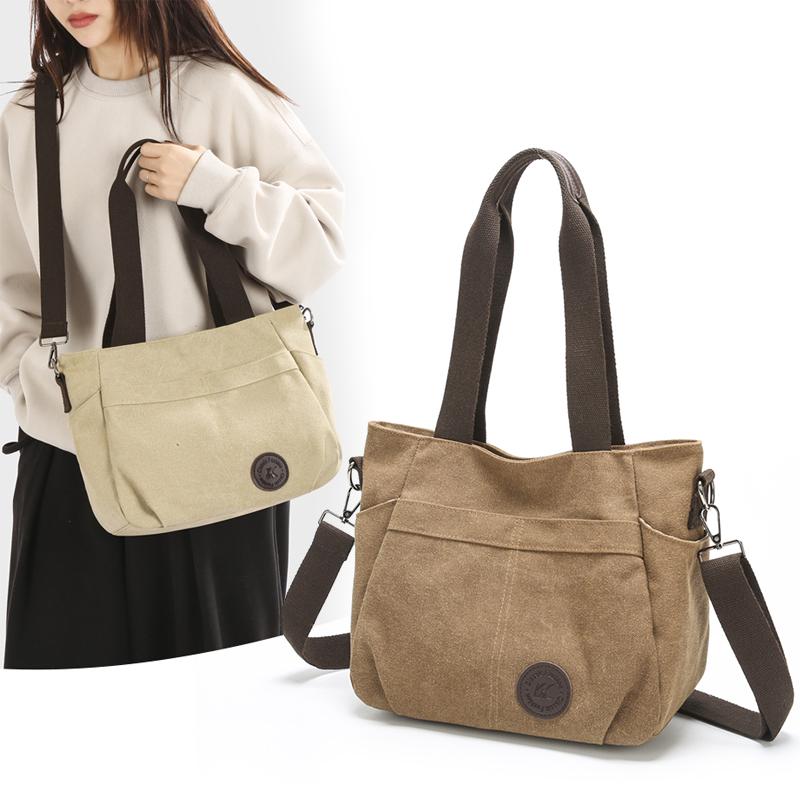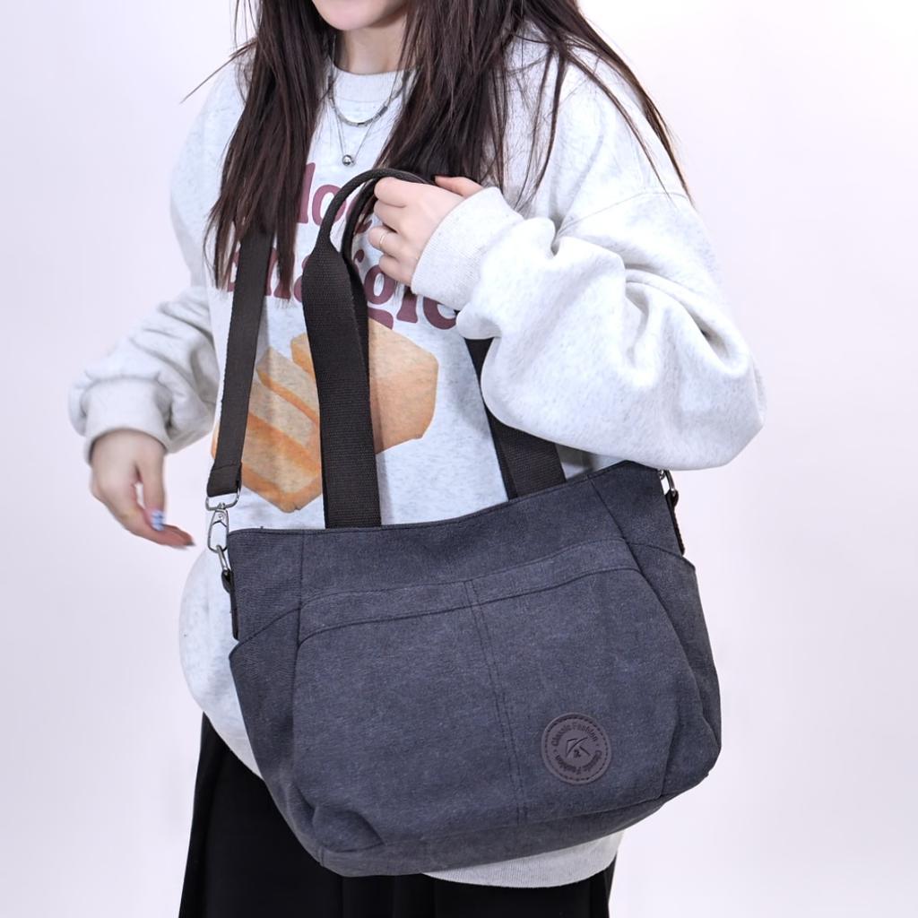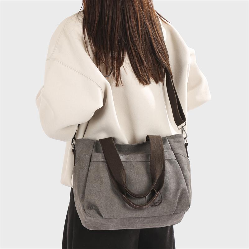 Женская большая вместительная холщовая сумка через плечо
