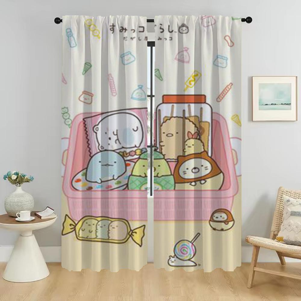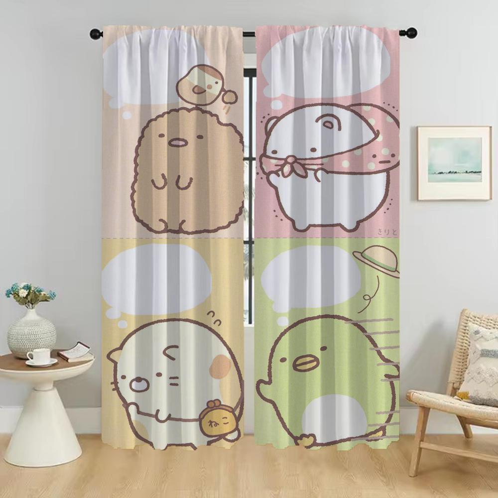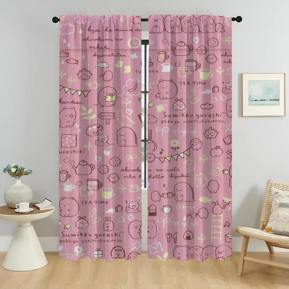 Anti-mosquito Curtains 2 Pieces Sumikko Gurashi Partition Window Curtain for Room 2 Panel Halloween Decoration Tulle for Bedroom