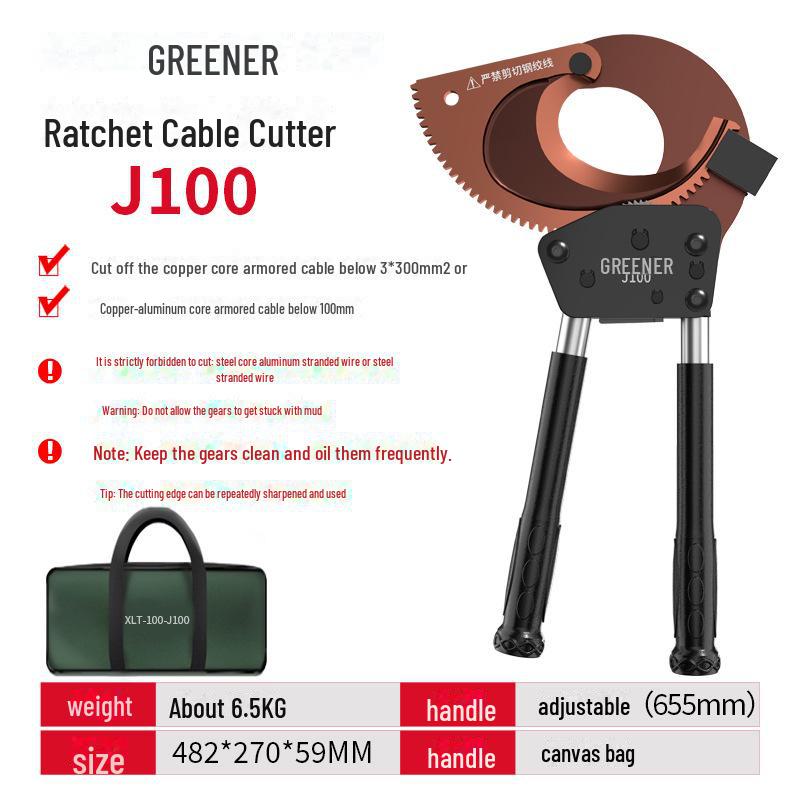 Кусачки для кабеля и проволоки Green Forest с храповым механизмом