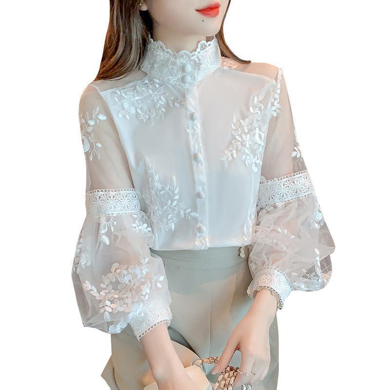 Рубашка в весеннем придворном стиле с вышивкой, рукавами-фонариками и кружевным узором для женщин