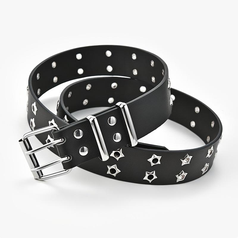Женский ремень со звездным глазом и заклепками, двухрядная пряжка, модный мужской ремень из искусственной кожи, ремень в стиле хип-хоп, панк-рок, джинсовый ремень