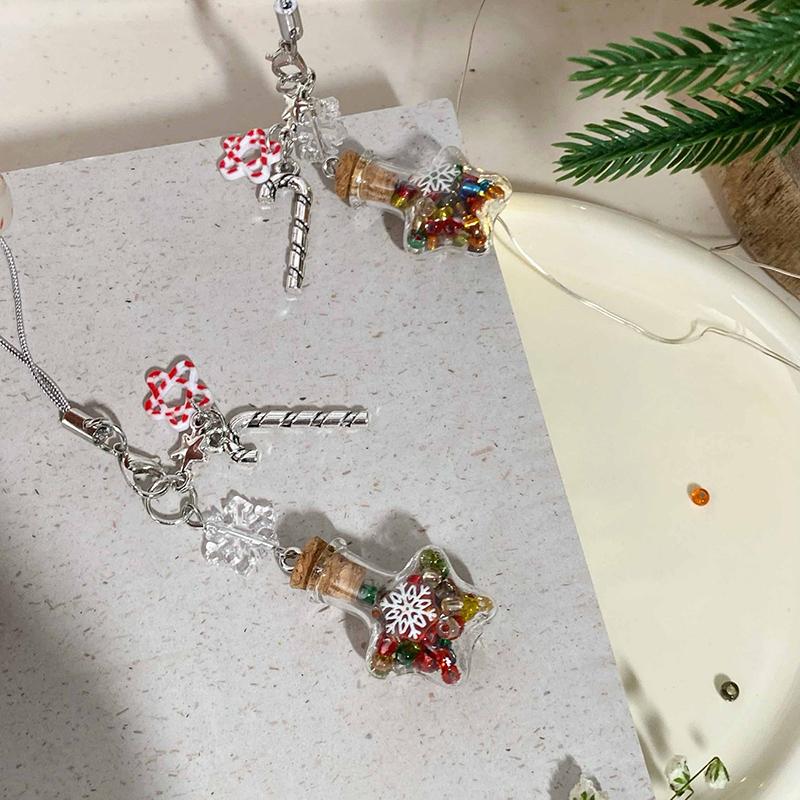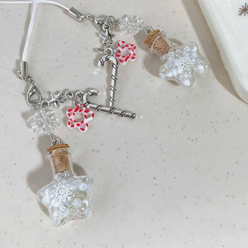 Рождественская бутылка с пожеланиями, телефонный шнурок, снежинка, трость, брелок, цепочка для мобильного телефона, девчачья сумка, кулон, милые рождественские подарки