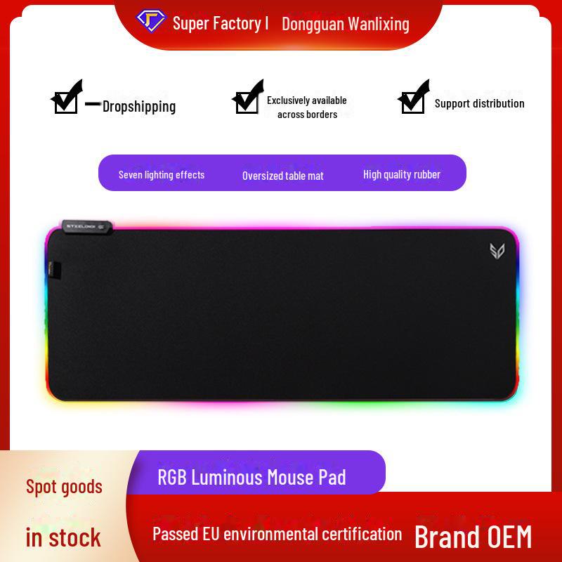 Коврик для игровой мыши с подсветкой RGB, устойчивый к грязи, большой, водонепроницаемый, однотонный