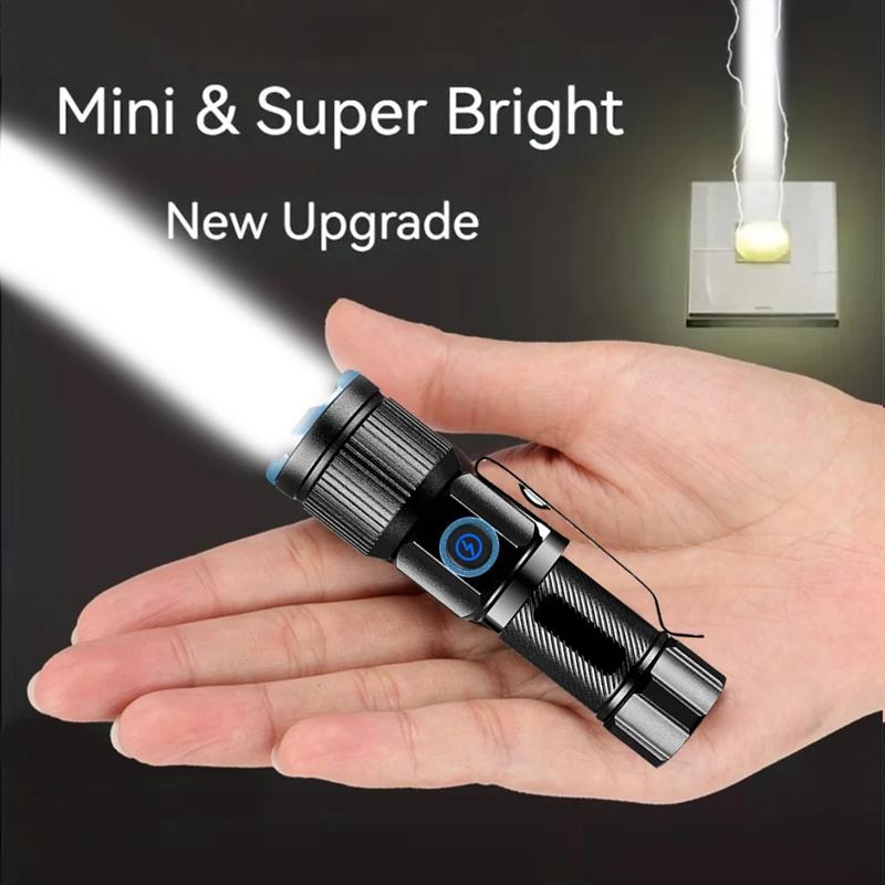 Zoom Белый луч света дальнего действия Мини-фонарик Type-C Usb перезаряжаемый портативный карманный фонарик для дома и улицы 16340 батарея