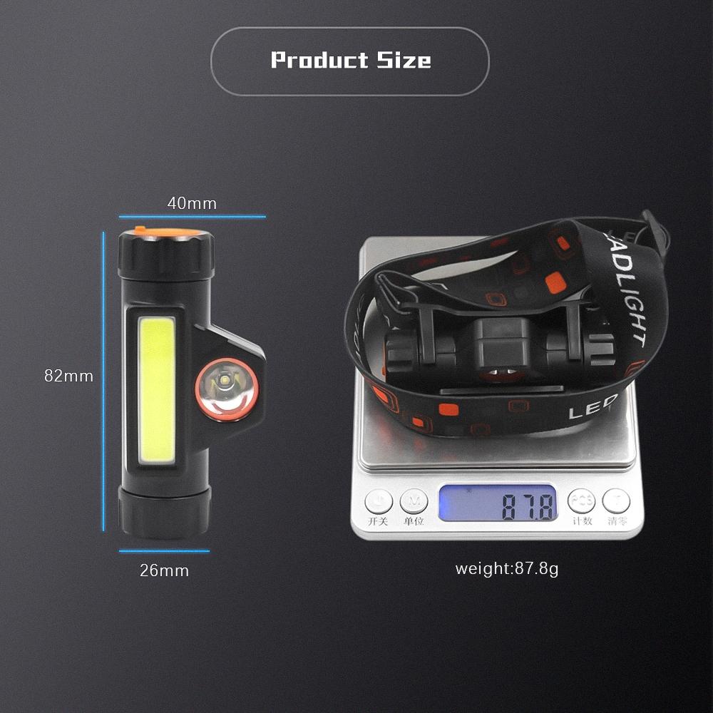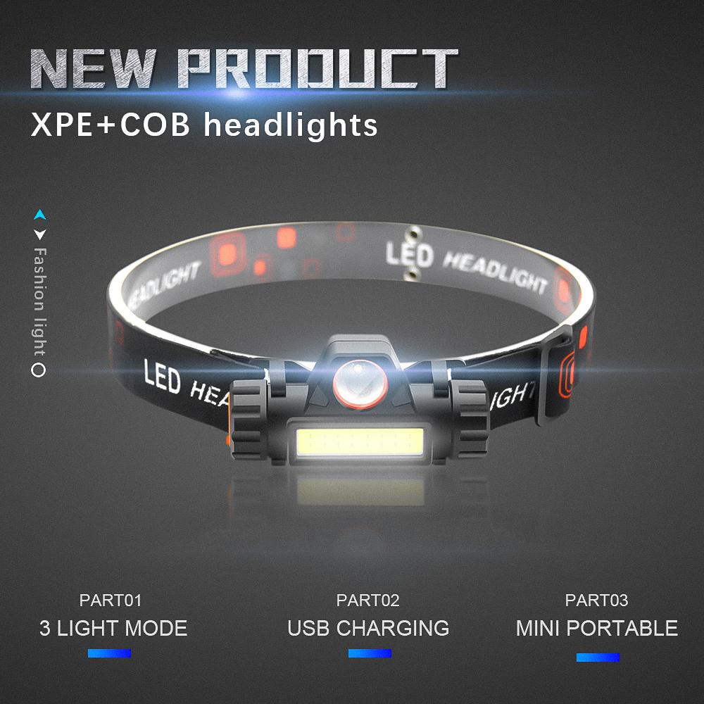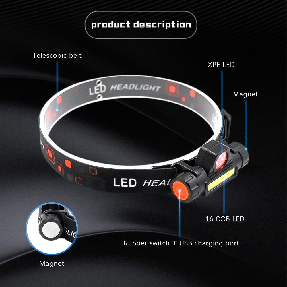 Плавная регулировка яркости светодиодной фары с регулировкой яркости, перезаряжаемая через USB, портативная вспышка, фонарик, налобный фонарь
