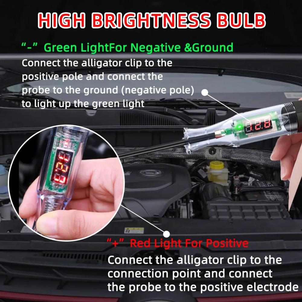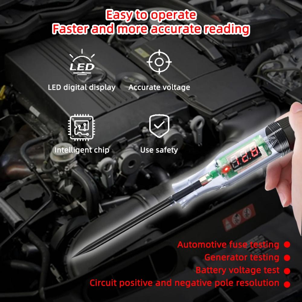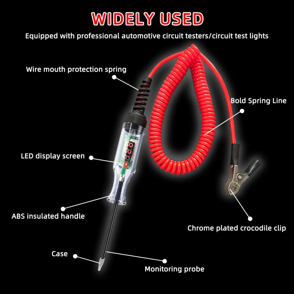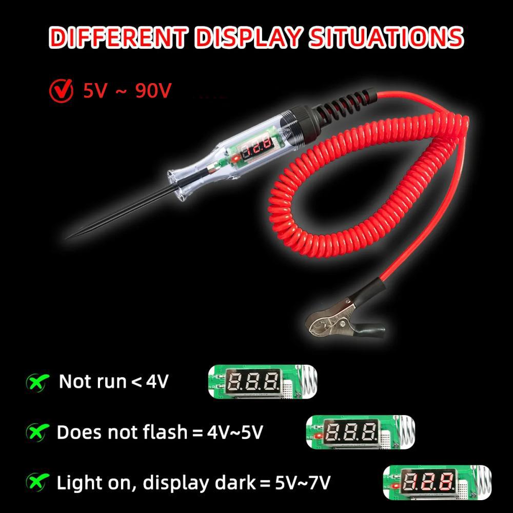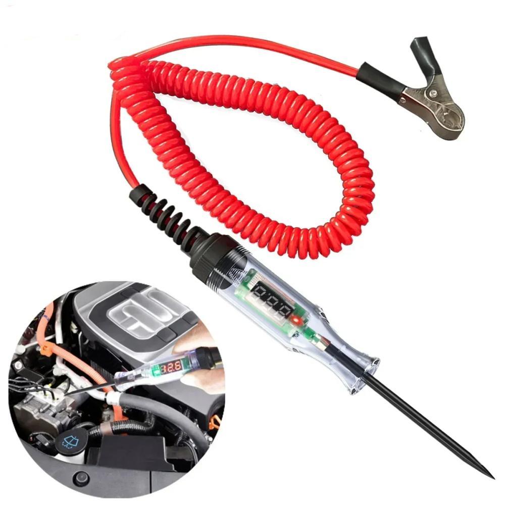 Тестер напряжения цепи для автомобиля грузовика цифровой, лампочка автомобильные диагностические инструменты светодиодный длинный зонд ручка, максимальное измеренное напряжение 90 В