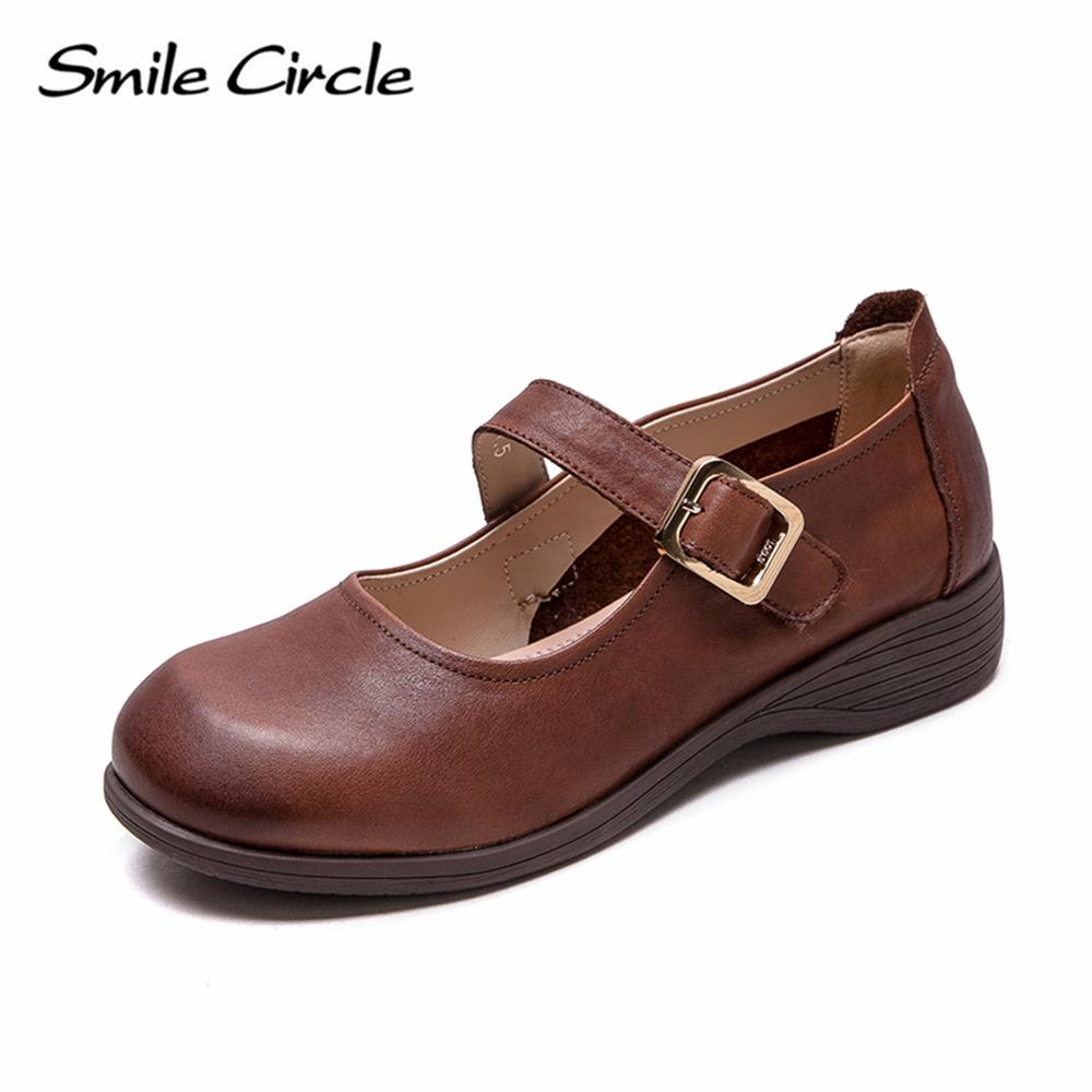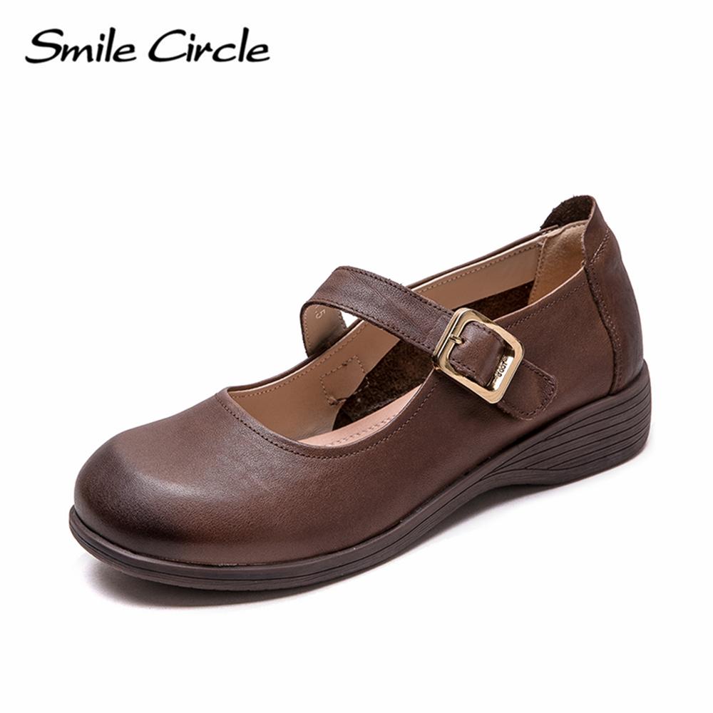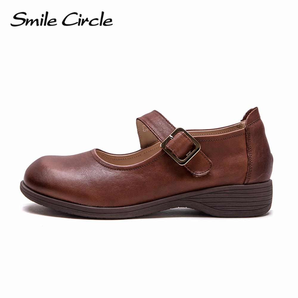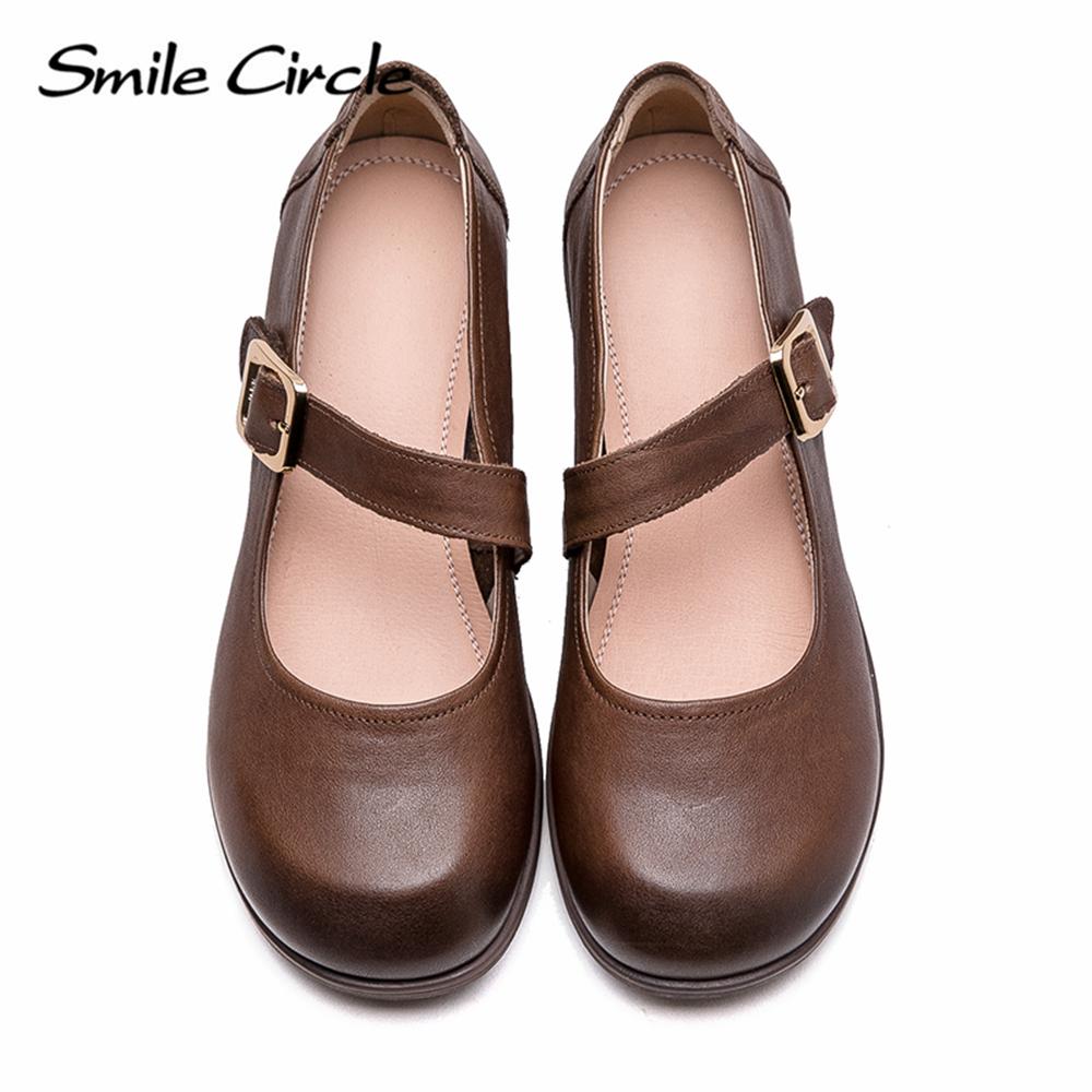 Туфли Мэри Джейн из натуральной кожи женские туфли с круглым носком и пряжкой на плоской подошве модная удобная повседневная обувь