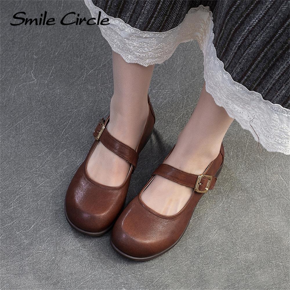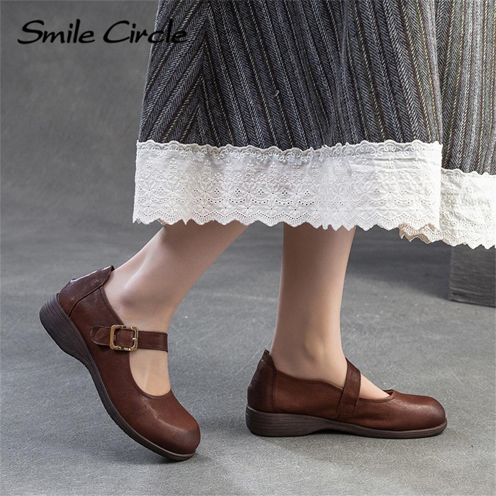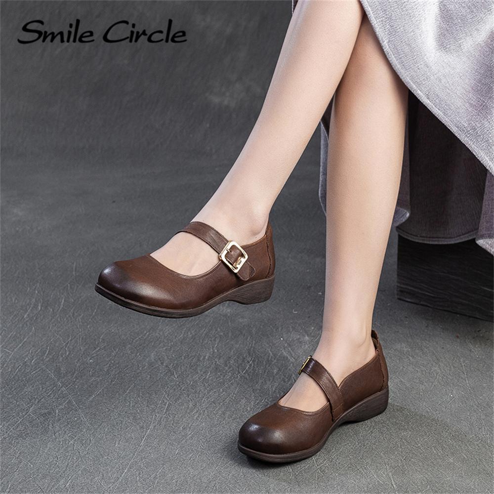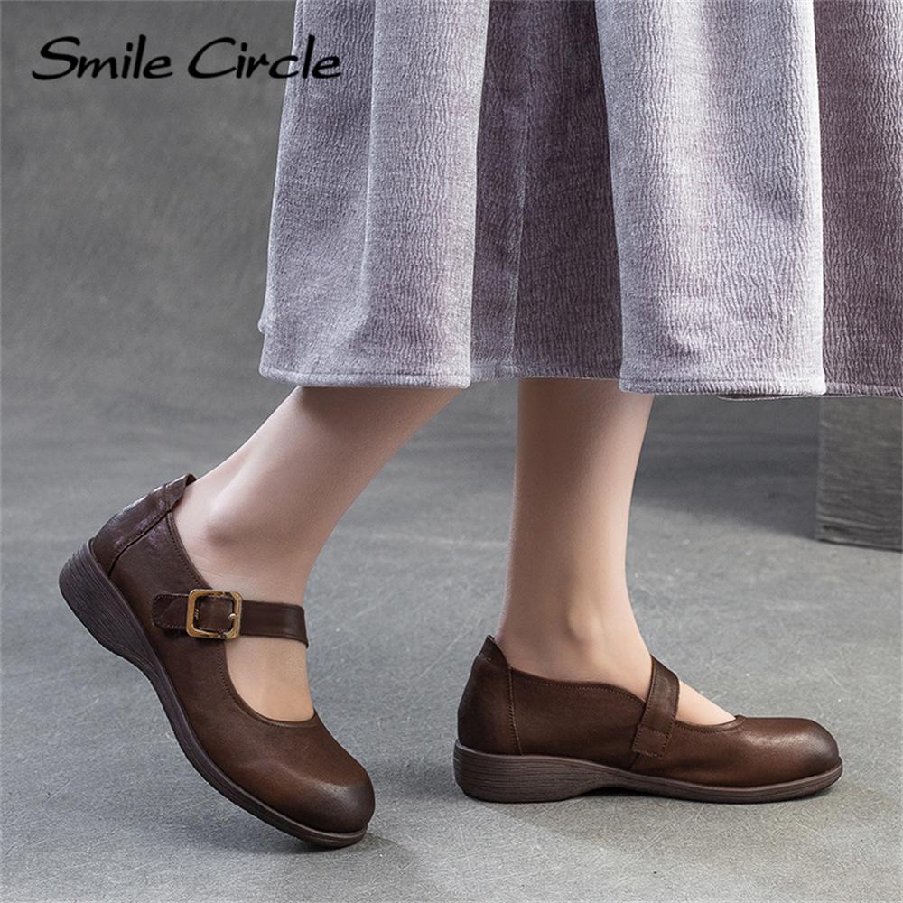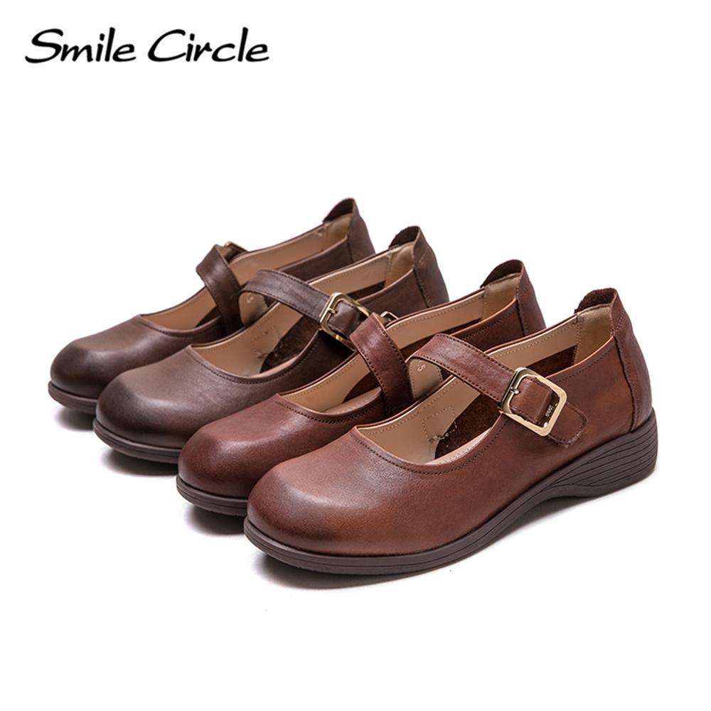 Туфли Мэри Джейн из натуральной кожи женские туфли с круглым носком и пряжкой на плоской подошве модная удобная повседневная обувь