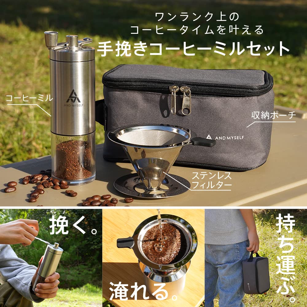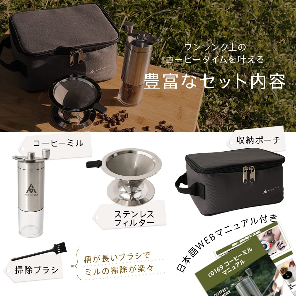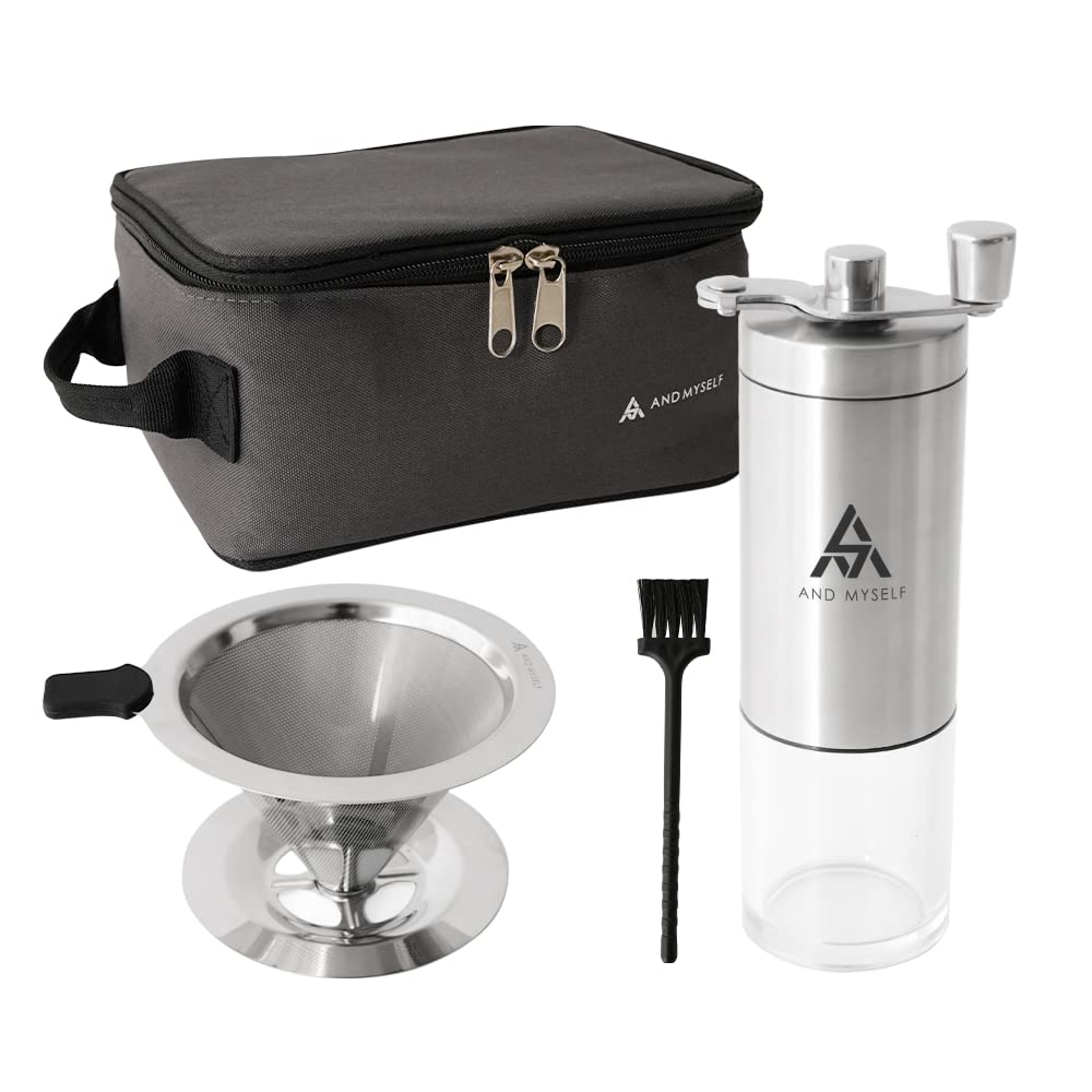 a coffee AND MYSELF Coffee Mill Manual steel mesh coffee filter No paper filter required coffee mill with storage bag for beginners Stepless