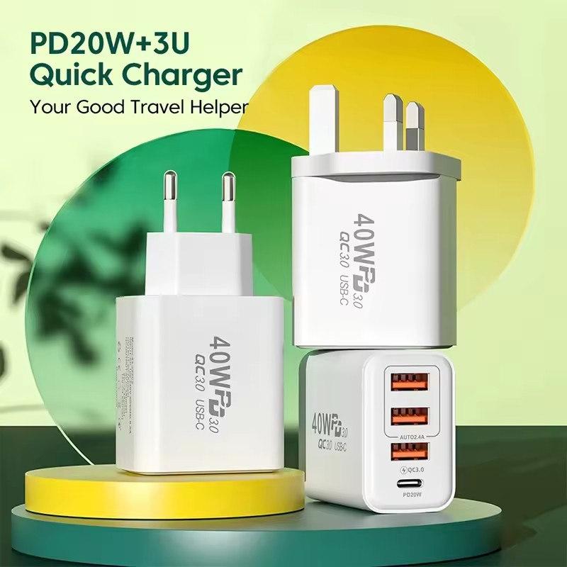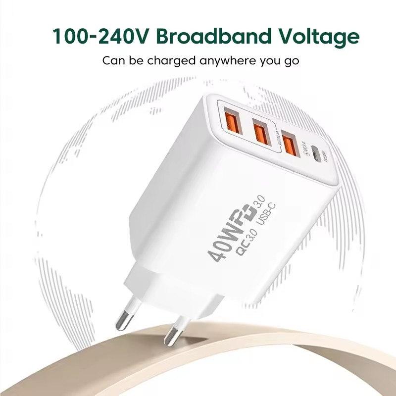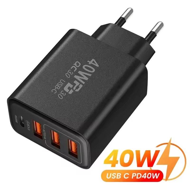 Зарядное устройство USB Type C, 40 Вт, 4 порта, быстрая зарядка 3,0, вилка европейского стандарта, быстрая зарядка для IPhone, Samsung, Xiaomi, адаптер для зарядки мобильного телефона PD