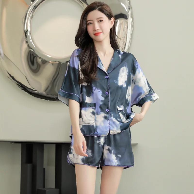 Newlook Летняя корейская тонкая пижама с короткими рукавами и шортами, женский костюм из ледяного шелка, домашняя одежда, мода, комфорт