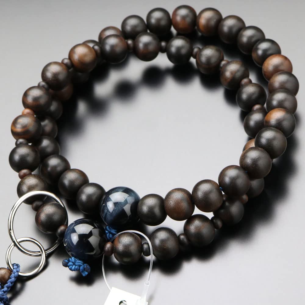 Четки секты Дзёдо для мужчин, полосатые эбеновые четки, синий тигровый глаз, настоящее серебряное кольцо, четки на санскрите, молитвенные четки Тэнбо, четки Киото, синие четки Киото