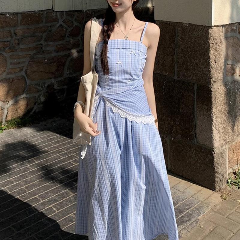 Женская мода новое клетчатое платье с талией и кружевным бантом на шее — купить товар онлайн с бесплатной доставкой по всему миру!