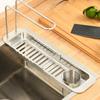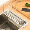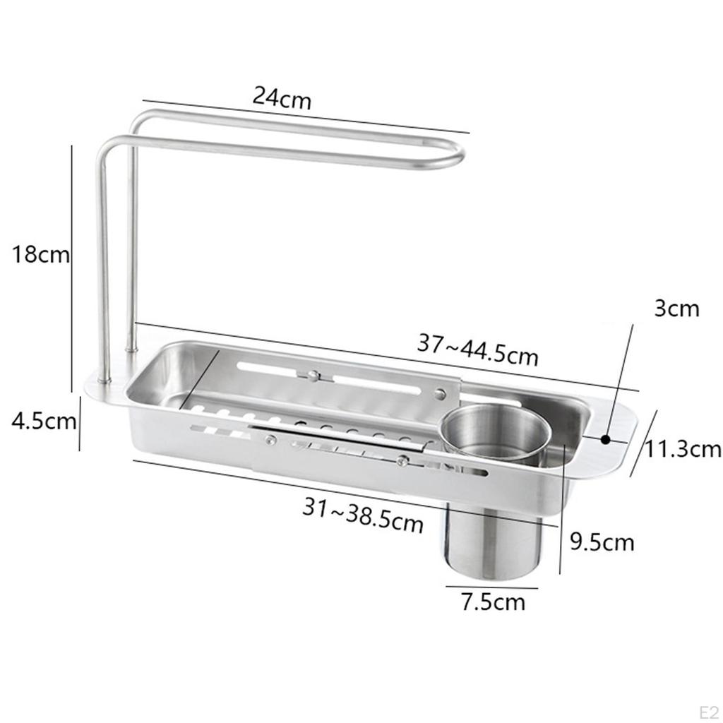 - 【Регулируемая длина】 Полка для хранения крана Полка для хранения сливного крана с телескопической конструкцией обеспечивает отличную вентиляцию, легкую очистку и быструю фильтрацию воды.