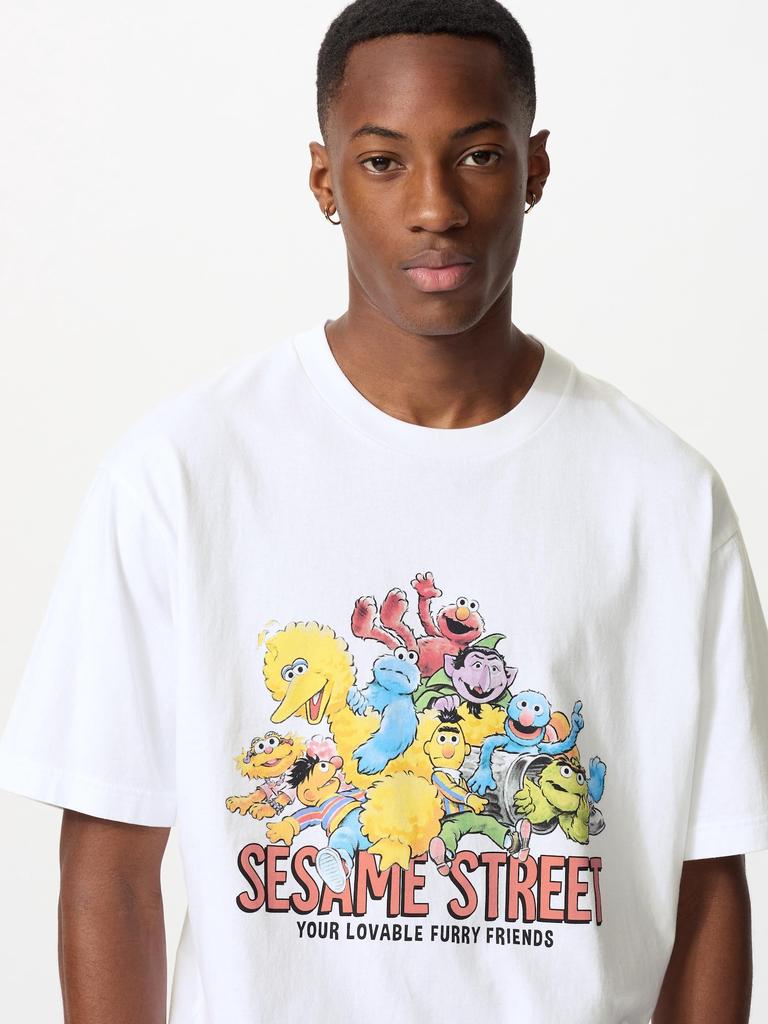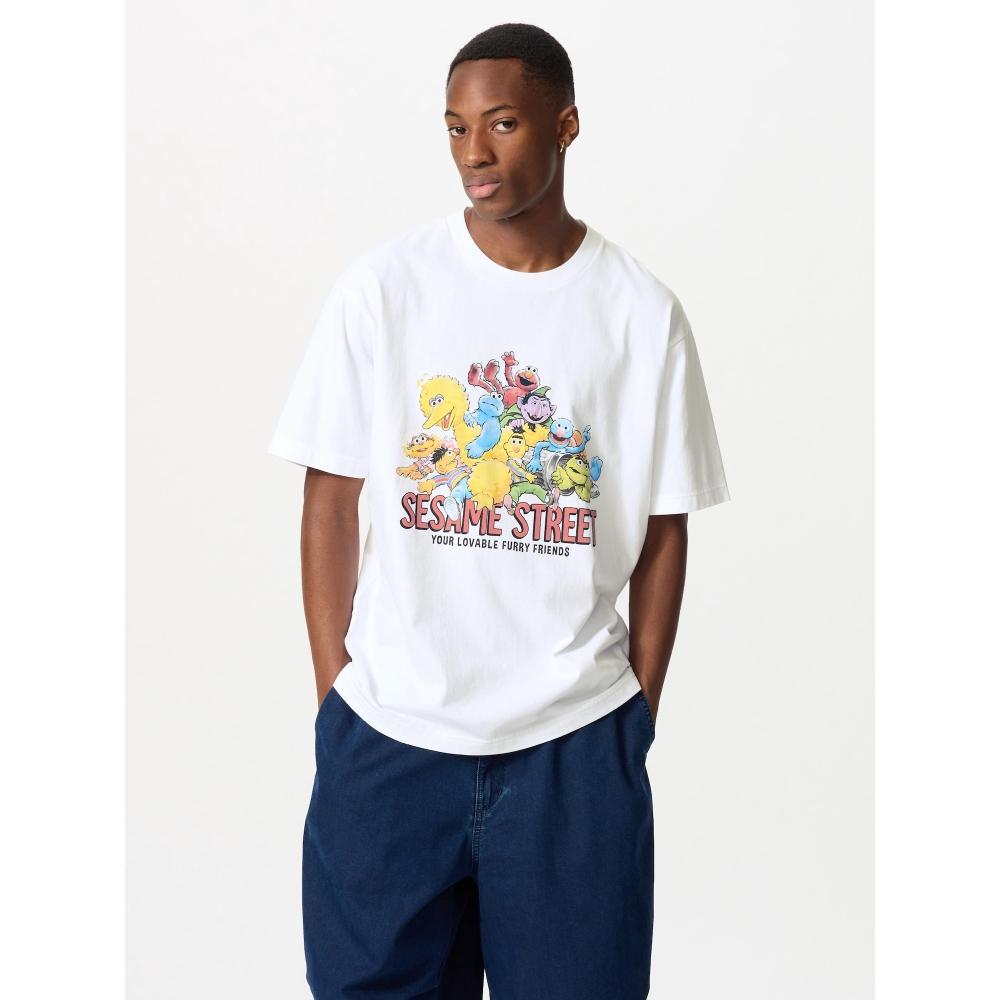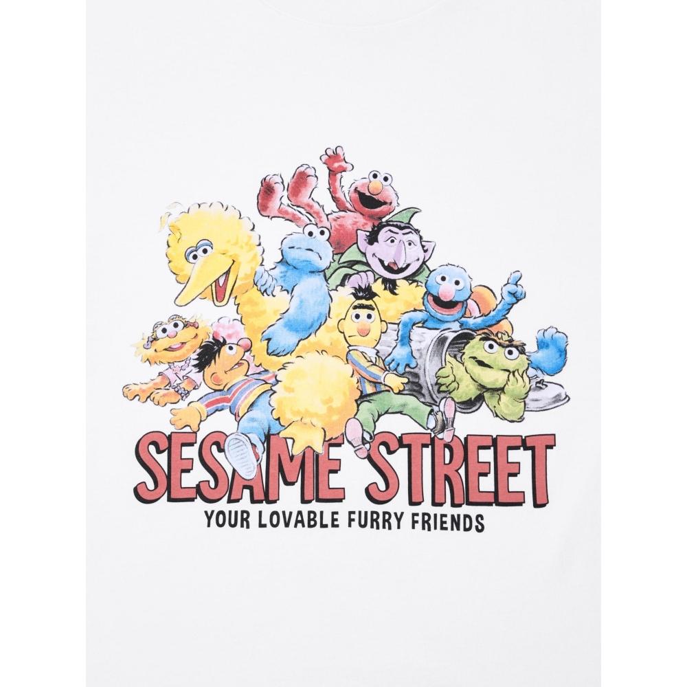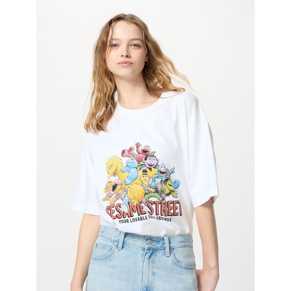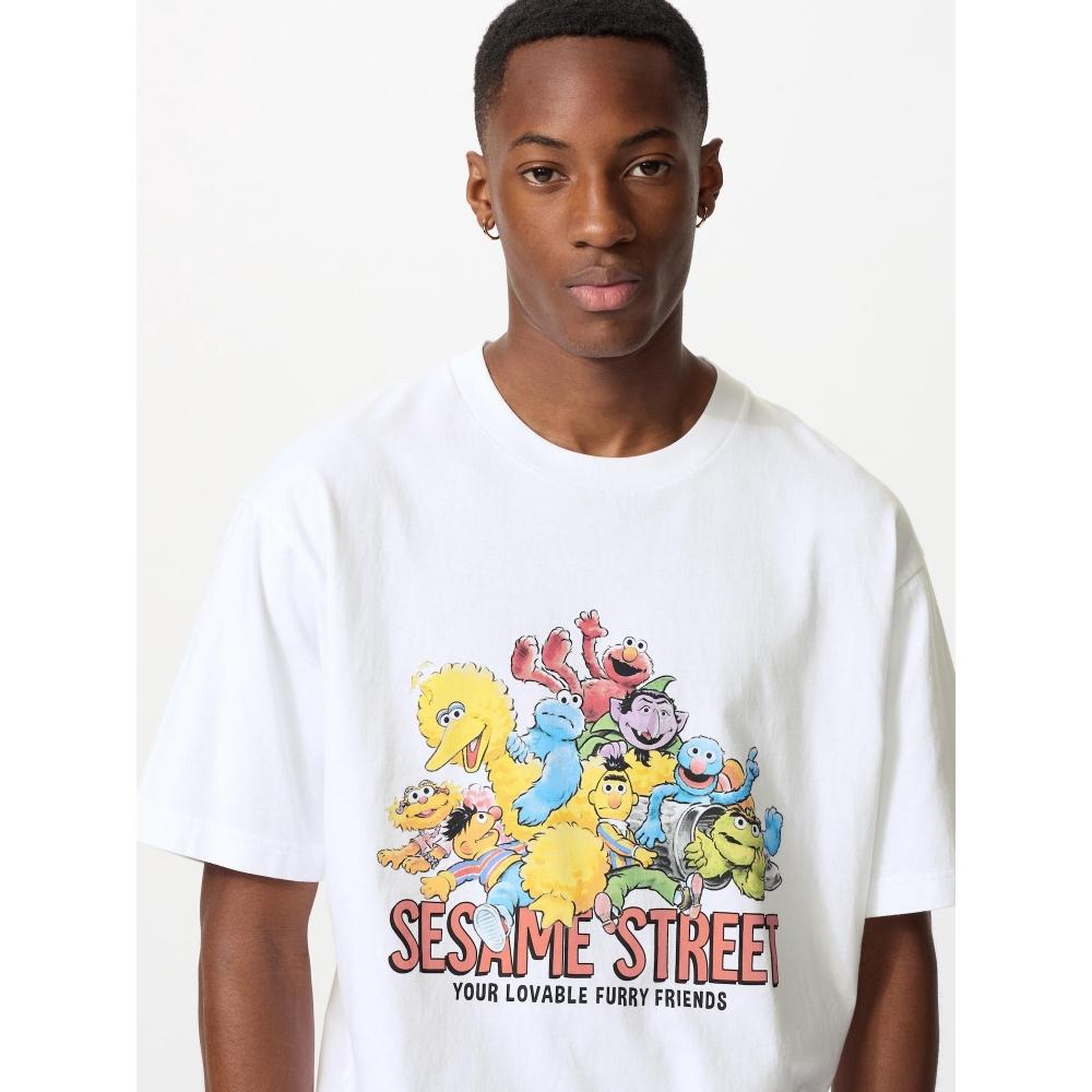 Почувствуйте ностальгию по Улице Сезам с рубашкой UNIQLO Japan Sesame Street UT/Relaxed Fit. На этом топе изображены такие культовые персонажи, как Элмо, Коржик-монстр и Большая Птица, в яркой винтажной иллюстрации, передающей причудливый дух любимого шоу, которое развлекает и обучает зрителей уже более 50 лет.. Свободный крой обеспечивает комфорт и демонстрирует веселую эстетику поп-культуры.