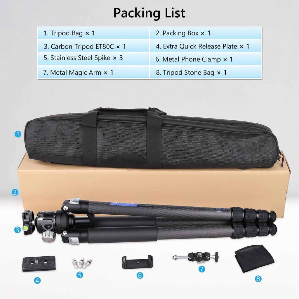 [Комплектация и 2 года послепродажного обслуживания] Штатив с карбоновой чашей * 1, сумка для штатива * 1, шаровая головка с низким центром тяжести 44 мм * 1, запасная быстросъемная площадка * 1, сумка для камней * 1, волшебная рука * 1, зажим для смартфона * 1, шип * 3. [2-летняя гарантия возврата] Мы предоставляем услугу гарантии возврата в течение 2 лет с даты покупки.. В маловероятном случае, если продукт окажется дефектным или поврежденным, пожалуйста, свяжитесь с нами.. Мы займемся возвратами, возмещениями, обменами и т. д.. Мы делаем все возможное, чтобы предоставлять нашим клиентам качественные продукты и услуги.