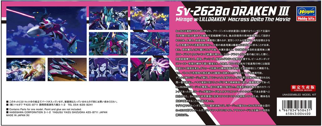 Hasegawa Фильм серии Macross Macross Delta Draken 3 Mirage Machine Draken Scale Пластиковая модель 65843 Sv-262Ba с Lil 1/72