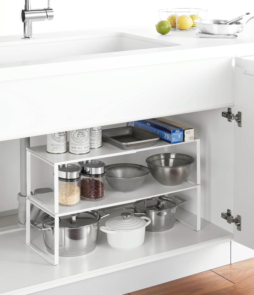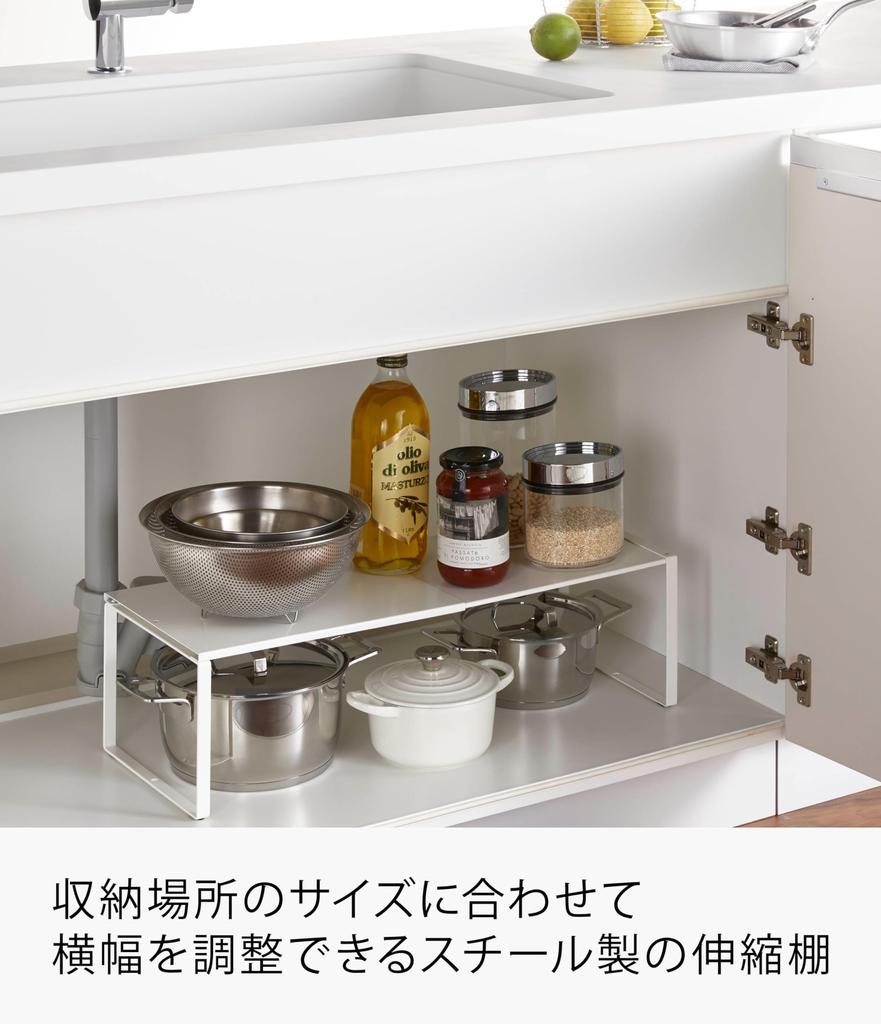 Yamazaki Jitsugyo 3829 выдвижная полка для хранения посуды, под раковиной, выдвижная полка, белый цвет, Ш36,5~60XГ23XВ18 см