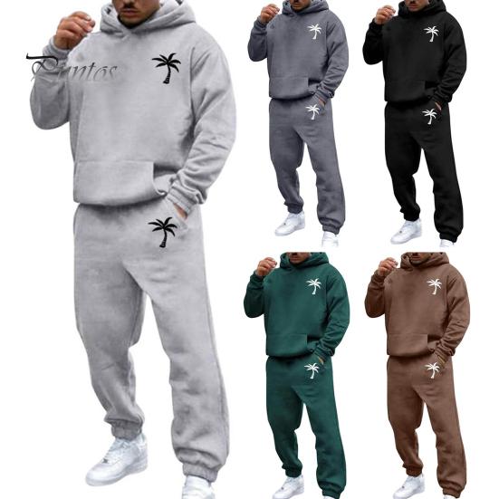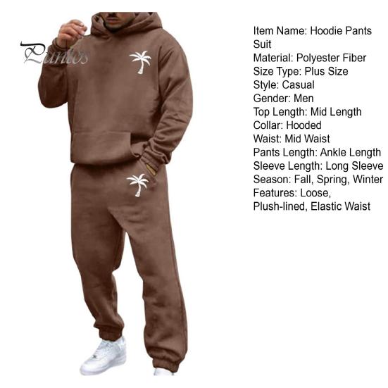 Мужской костюм с капюшоном и брюками, уличный, с плюшевой подкладкой, большой размер, свободный спортивный костюм для улицы, однотонный зимний спортивный костюм, комплект из брюк с завязками на щиколотках