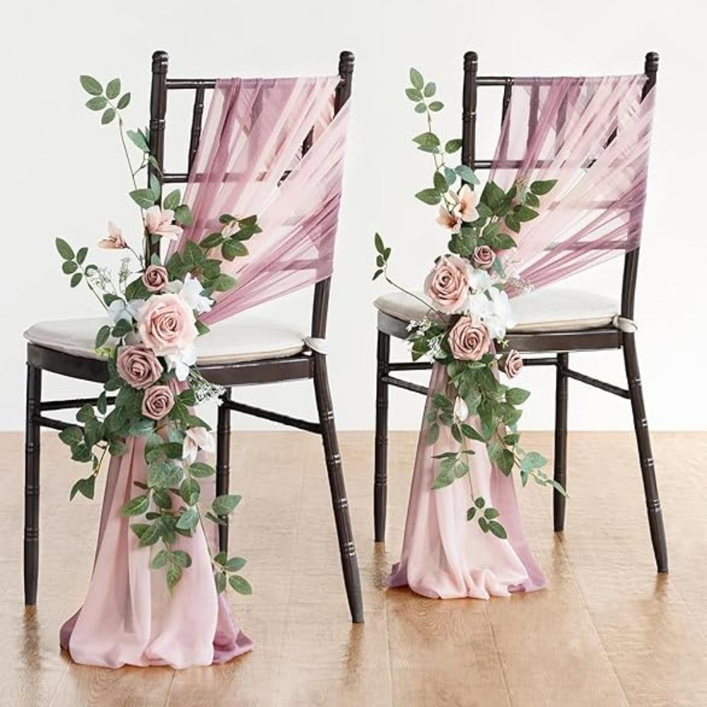 2 комплекта украшений для стульев на свадьбу, церковная скамья, искусственные цветы, зелень, гирлянды, скамья, церемония, прием, цветочный искусственный фон, роза, вечеринка на открытом воздухе