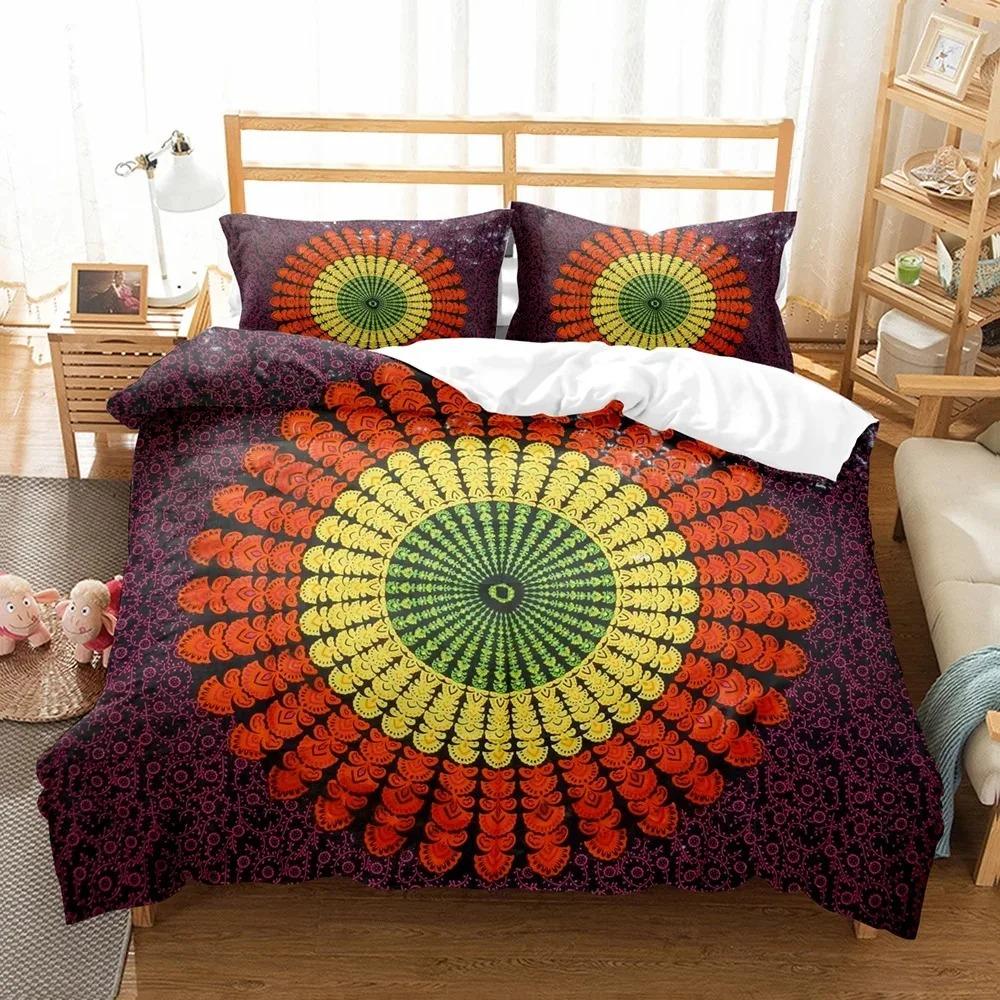 Комплект постельного белья в цвете в стиле бохо, размер «королева-королева», пододеяльник с наволочкой и рисунком мандалы, 23 шт.