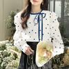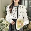 VONDA Женские осенние блузки с круглым вырезом и длинным рукавом в горошек на шнуровке
