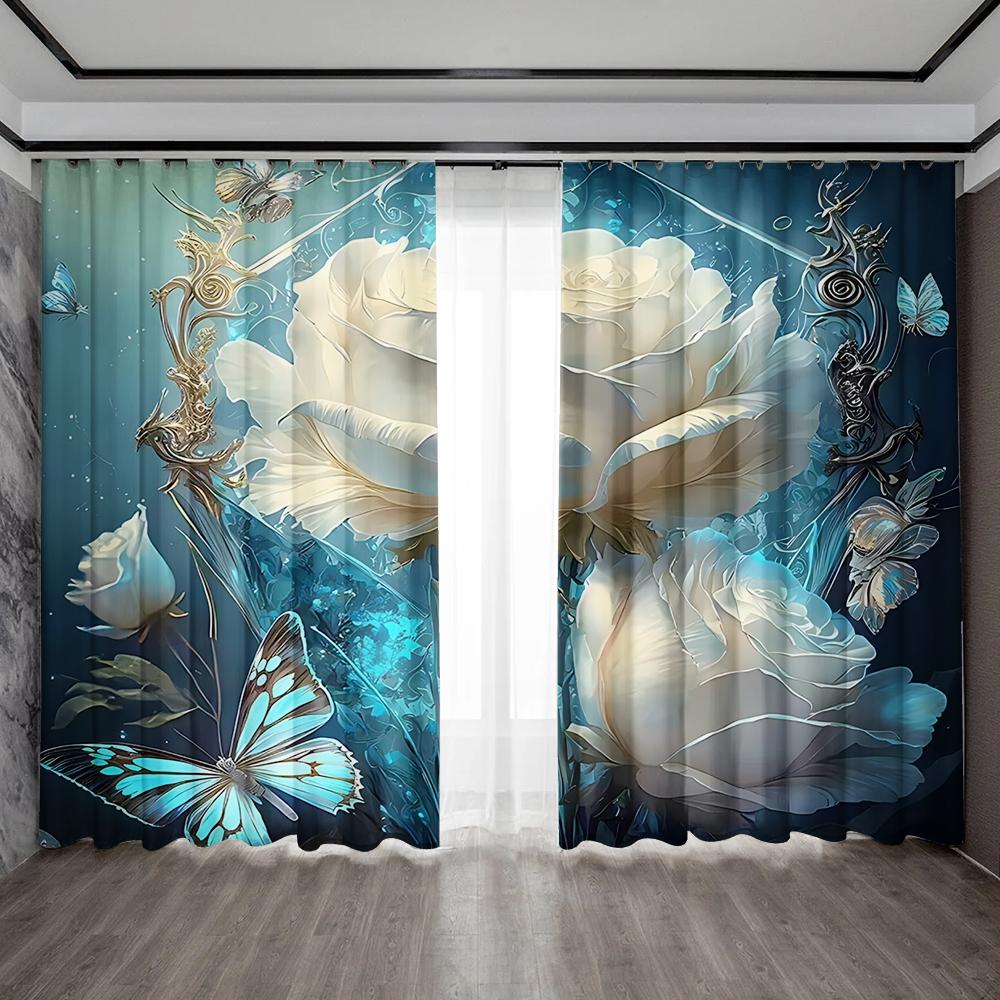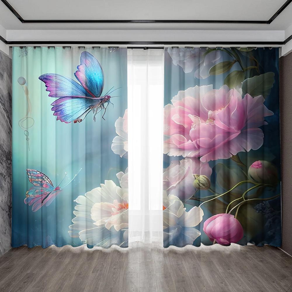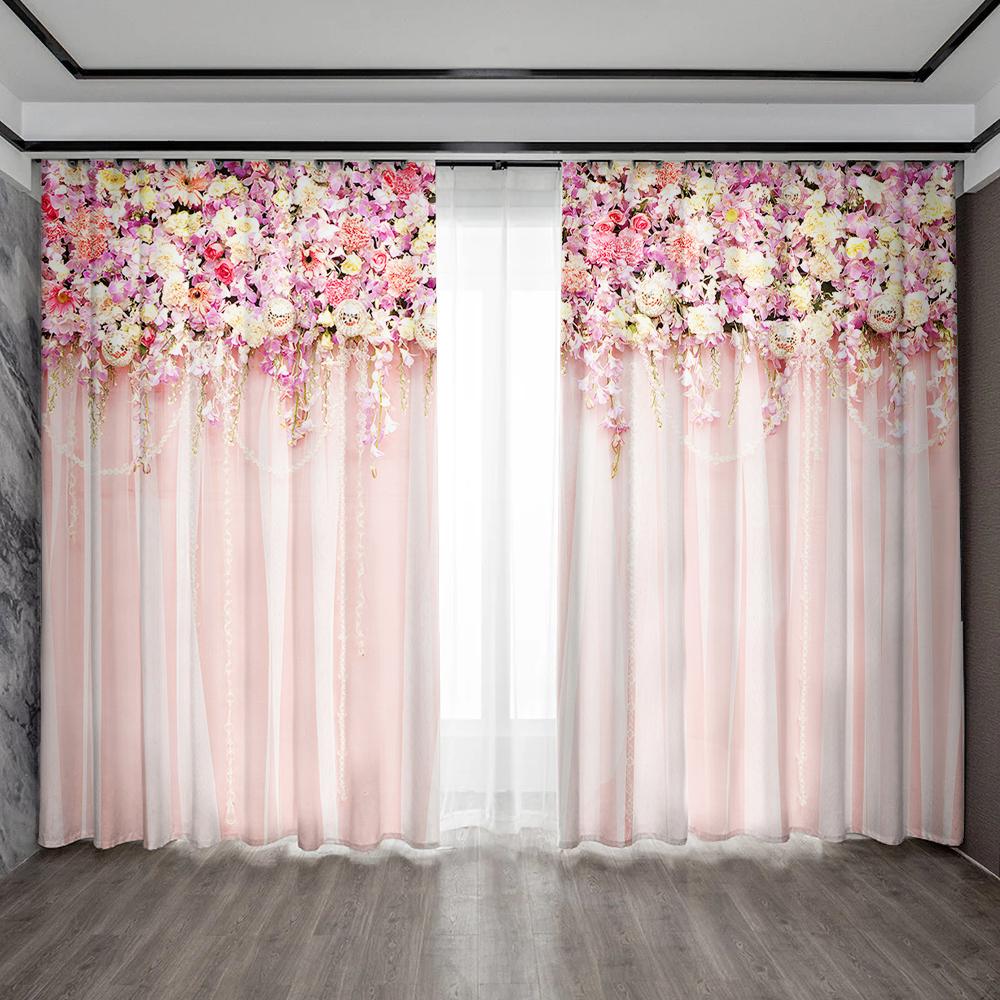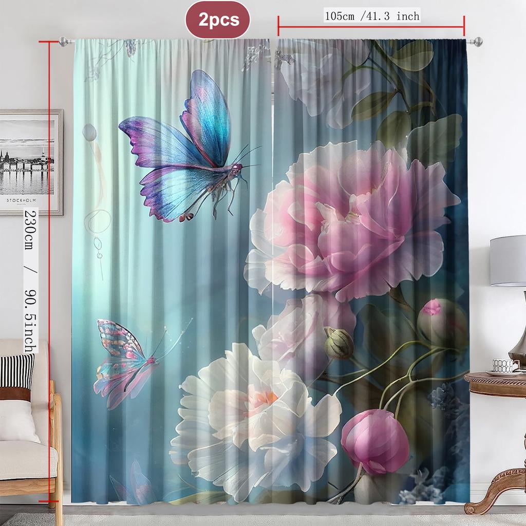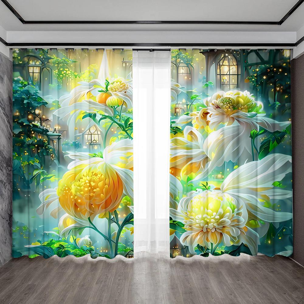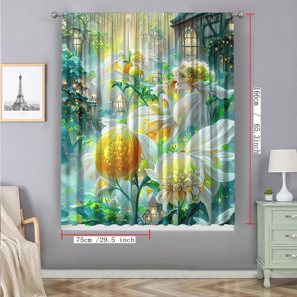 2 шт. Домашние декоративные шторы с мечтательным цветочным фоном и шторы с карманом для штанги, подходят для кухонь, кафе, гостиных