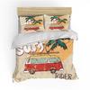 Пододеяльник для серфинга Хиппи Классический Старый Автобус Доска для серфинга Свобода Праздник Экзотическая Жизнь Эскизное Искусство Желтый Оранжевый Декор комнаты для женщин и мужчин